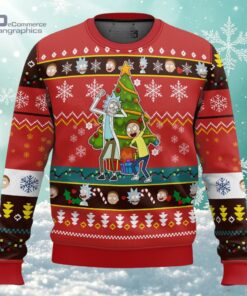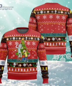 Rick And Morty Dance Merry Christmas 3D All Over Printed Red Ugly Christmas Sweater