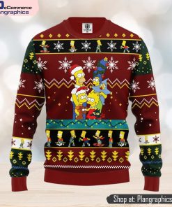 Simpson Family Red Brown 1 Thanksgiving Women Mens Ugly Christmas Sweater
