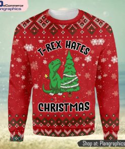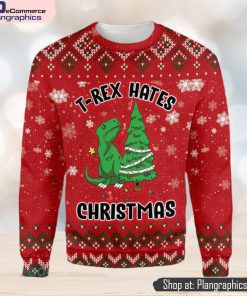 T Rex Hates Ugly Christmas Sweater Xmas Gift 3D Christmas Sweater
