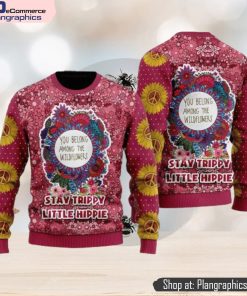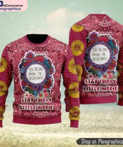 Tacky Retro Xmas Threads Stay Trippy Little Hippie Ugly Christmas Sweater For Men and Women