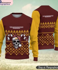 Washington Football Team Ugly Christmas Skull Xmas Sweater Hibernate Gift Mens Women