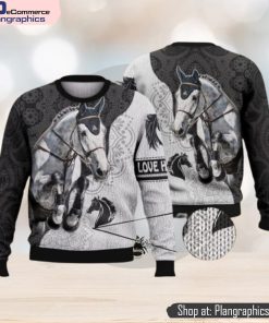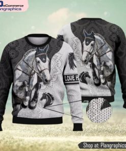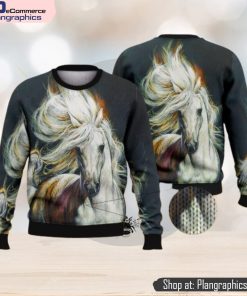 White Horse Black Full Print For Horse Lovers 3D Ugly Sweater Christmas Gift Sweater