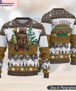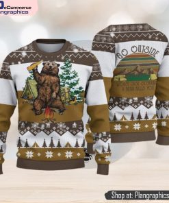Camping Bear Go Outside Ugly Christmas Sweater Holiday For Men And Women