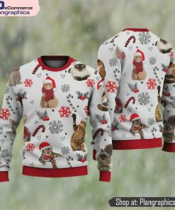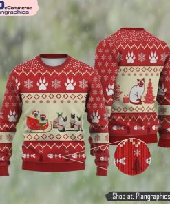 Cat Christmas Sweater, Siamese Cat Reindeer Ugly Christmas Sweater 3D For Xmas
