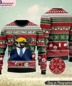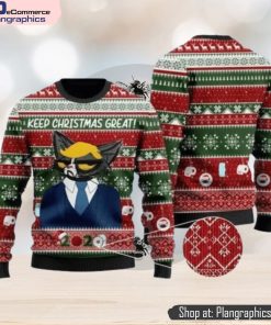 Cat Christmas Trump Cat Keep Christmas Great Green Red Christmas Ugly Sweater 3D For Men And Women
