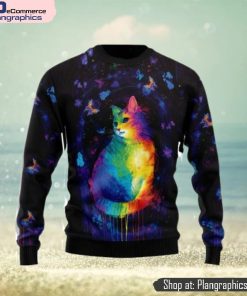 Cat Colorful Little Cute Kitten Happy Life Gly Christmas Sweaters