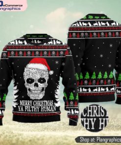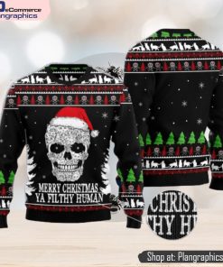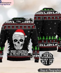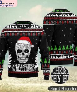 Cat Skull Santa merry Christmas Ya Filthy Human Ugly Christmas 3D Sweater