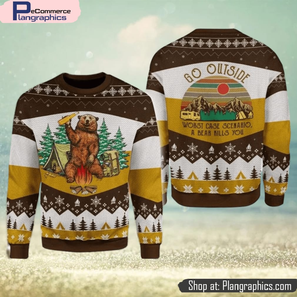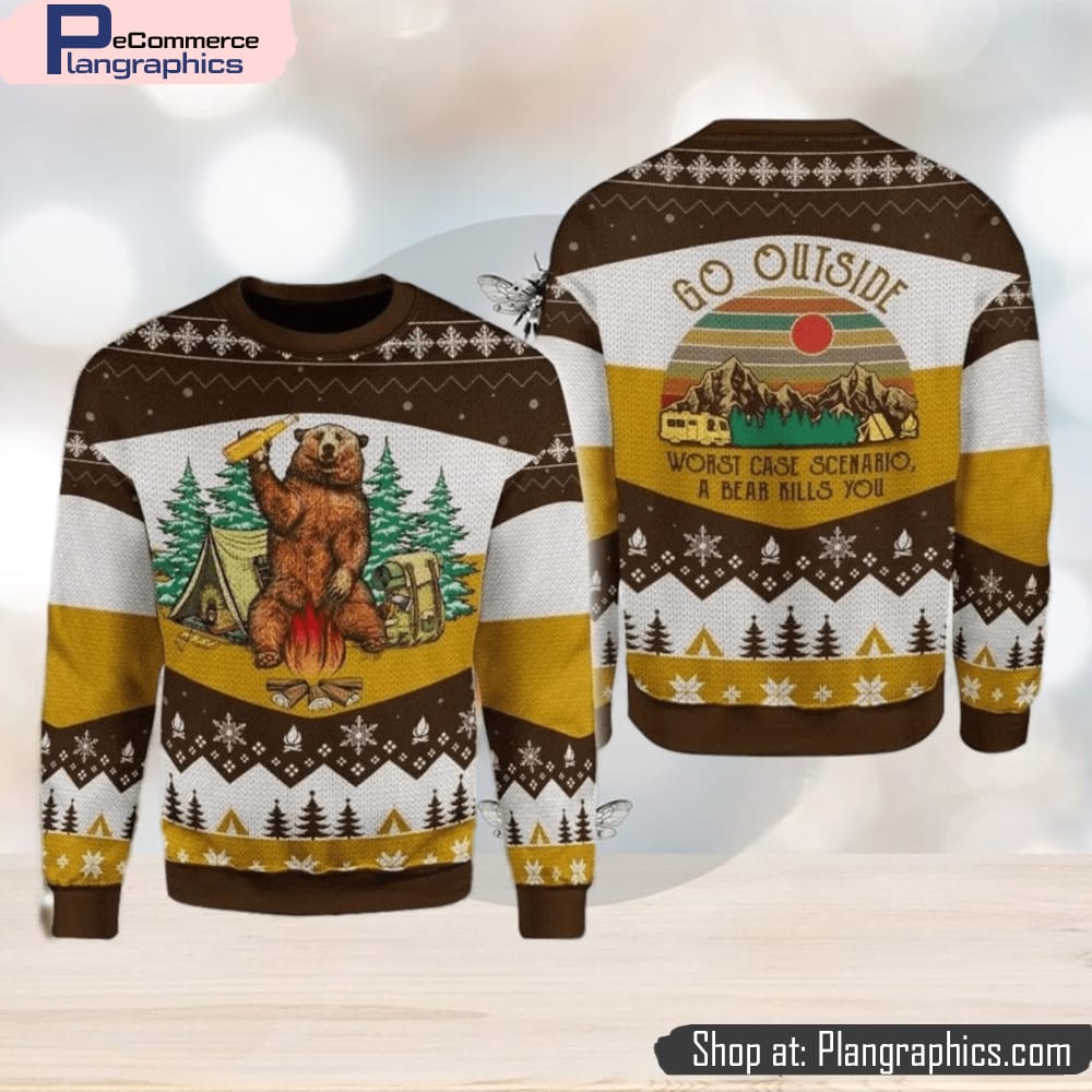 A Bear With Beer Go Outside Camping 3d All Over Print Ugly Christmas Sweater