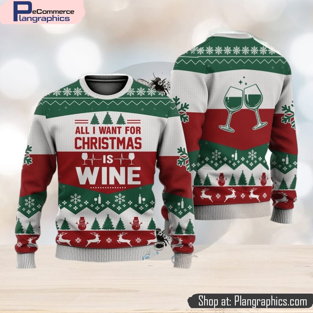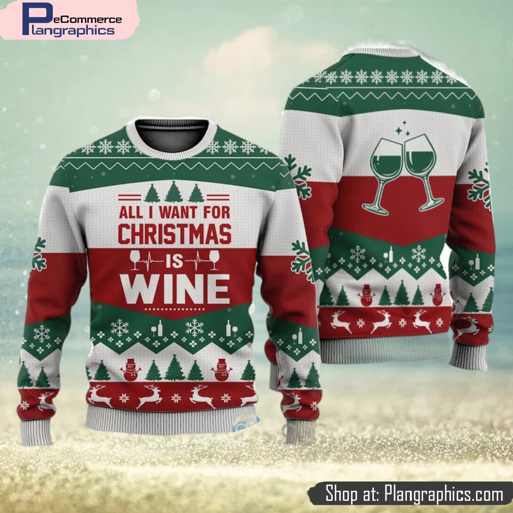 All I Want For Christmas Is Wine Christmas Gift Ugly Christmas Sweater