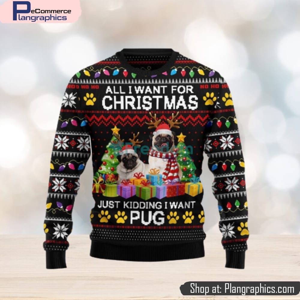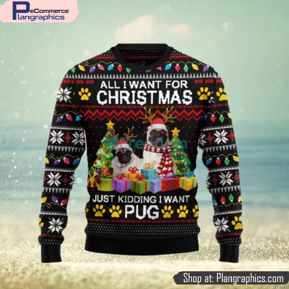 All I Want For Christmas Just Kidding I Want Pug Ugly Christmas Sweater