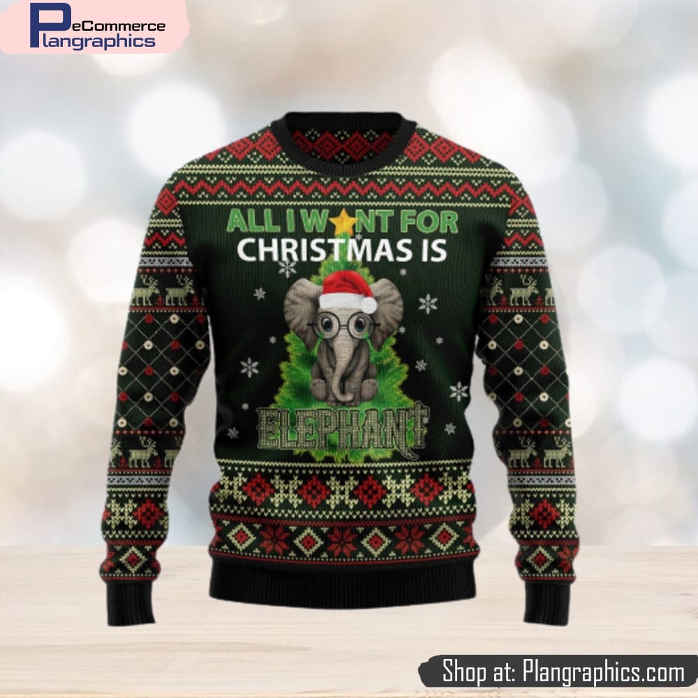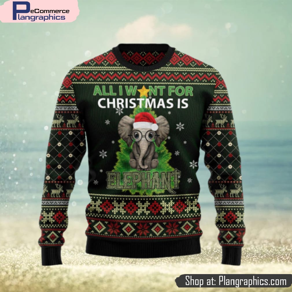 All I Want For Is Elephant Ugly Christmas Sweater Gift Men Women