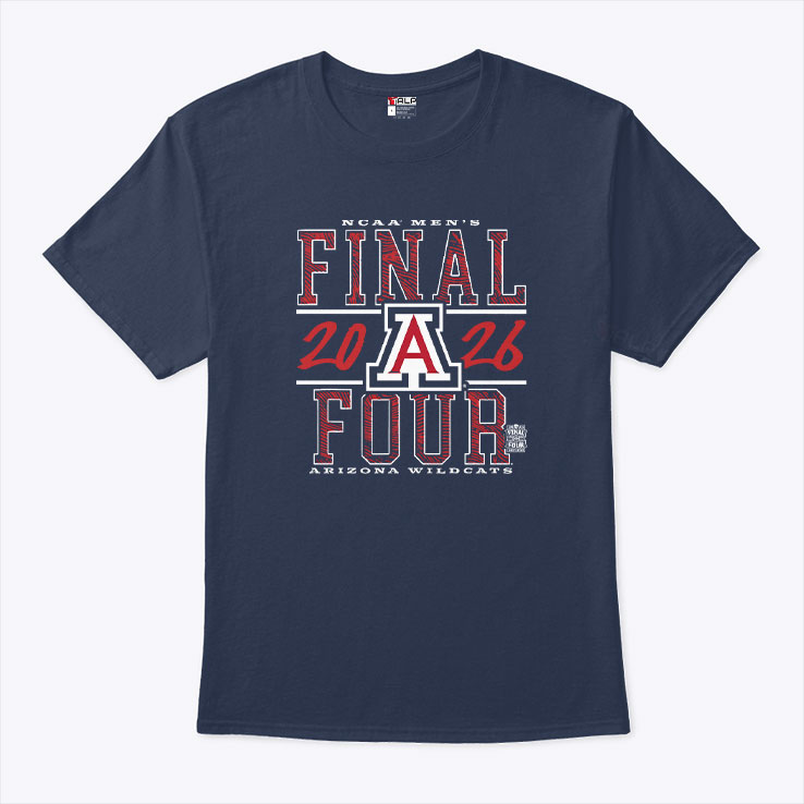 Bold block serif lettering marks the energy of the Final Four 2026 moment for Arizona basketball with undeniable presence. The large A emblem anchors the design, a steadfast symbol of pride, rendered in sharp red, white, and blue against a deep navy background. Outlined typography gives the text FINAL FOUR a weight and structure that mirrors the intensity of the tournament itself—strong, unyielding, yet crafted with clear precision. This shirt moves beyond mere team spirit; it’s an expression of dedication to the Wildcats’ march through March Madness. The color scheme reverberates patriotism and school pride, woven together through athletic typography that feels both retro and contemporary. It’s the kind of piece that belongs in a crowd of focused fans, worn by those who understand basketball isn’t just a game—it’s identity in motion. Pair it with casual jeans or workout shorts when rallying at a game or gathering with friends to watch the tournament. It’s a fit for anyone who lives for the thrill of the court and honors Arizona’s legacy. Whether as a staple in a collegiate fan’s wardrobe or a thoughtful nod from one basketball devotee to another, this design carries the energy and spotlight of basketball’s biggest stage without compromise. The final_four_2026_arizona spirit is woven into every stitch, an emblem of pride for seasons past and those to come.