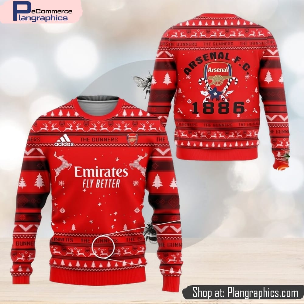 Arsenal FC Red Est 1886 Ugly Christmas Sweater Design Sweatshirt For Fans Gift