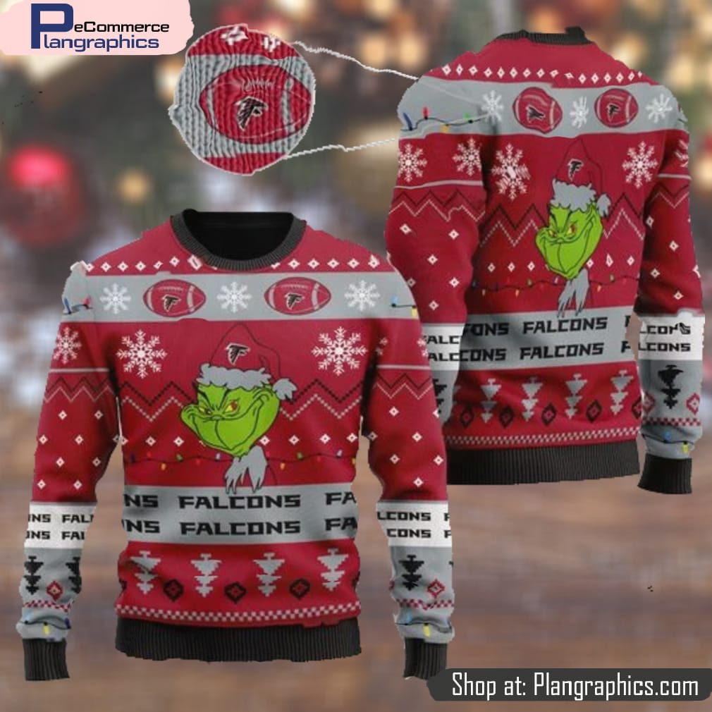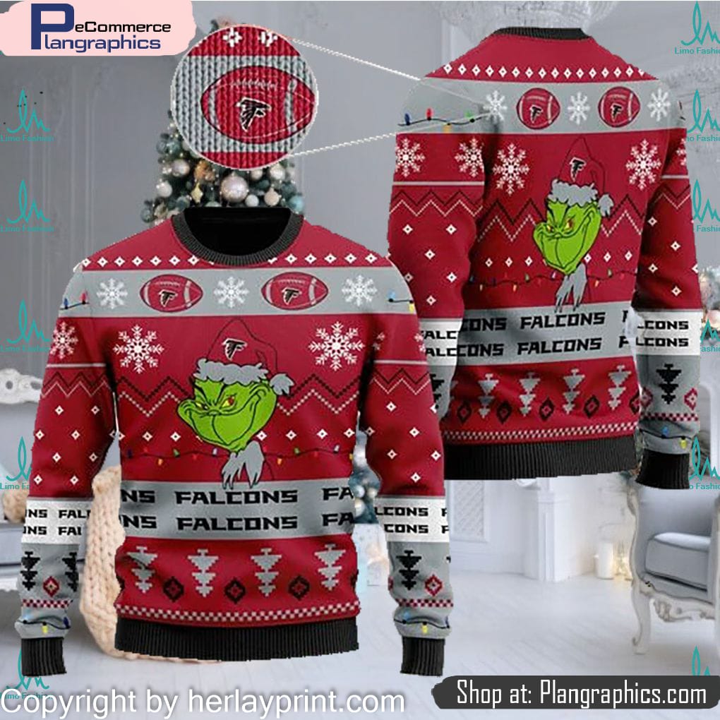 The Atlanta Falcons NFL football team logo cute Grinch 3D men and women ugly sweater is a festive and playful clothing item that fans can wear to show their support for the team. The sweater features a unique design of the Atlanta Falcons logo combined with the iconic Grinch character, creating a fun and eye-catching look. This sweater is available for both men and women, ensuring that fans of all genders can enjoy wearing it. The 3D effect adds an extra element of depth and visual interest to the sweater, making it a standout piece. Overall, this sweater is a must-have for Atlanta Falcons fans looking to stay warm and stylish during the colder months.