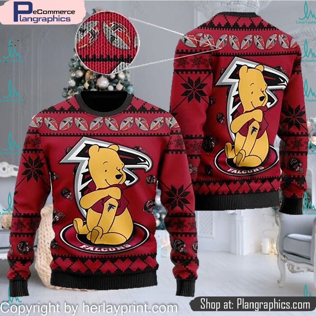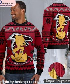Atlanta Falcons NFL American Football Team Logo Cute Winnie The Pooh Bear 3D Ugly Christmas Sweater features