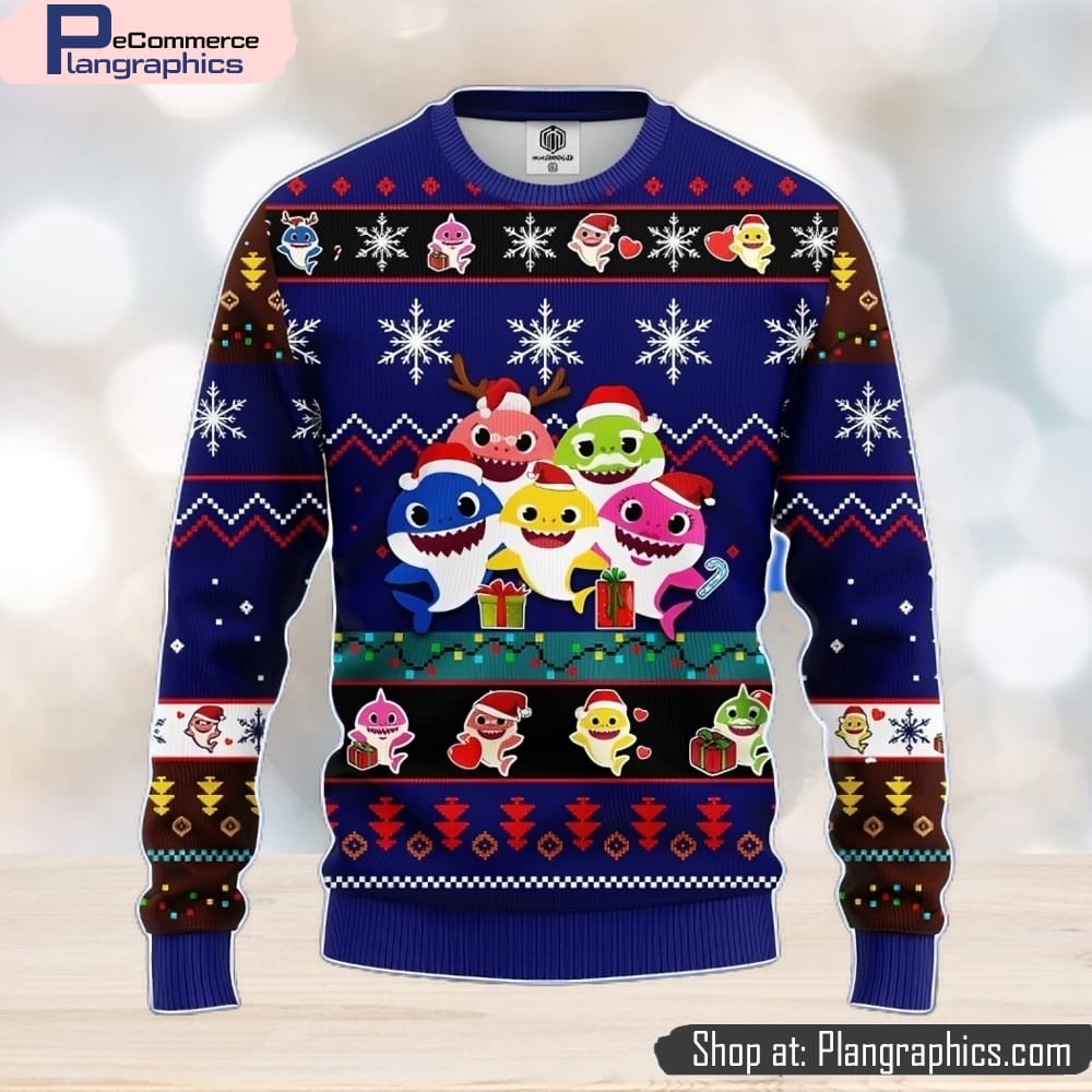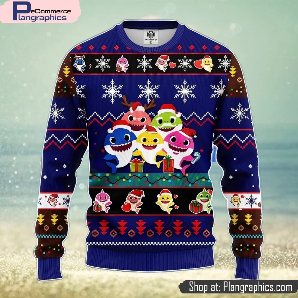 Baby Shark Ugly Christmas Sweater Blue 1 Amazing Gift Men And Women Christmas Gift features