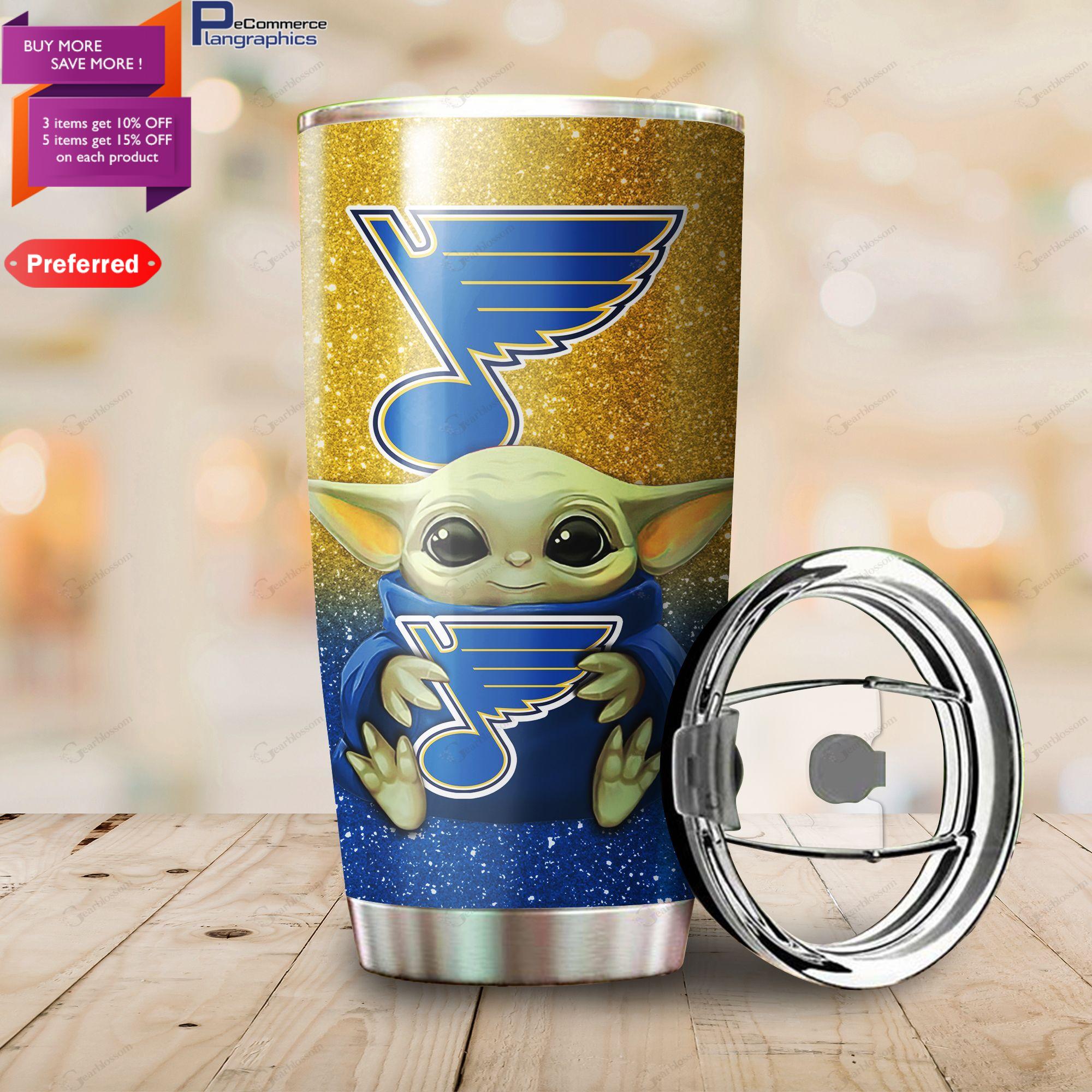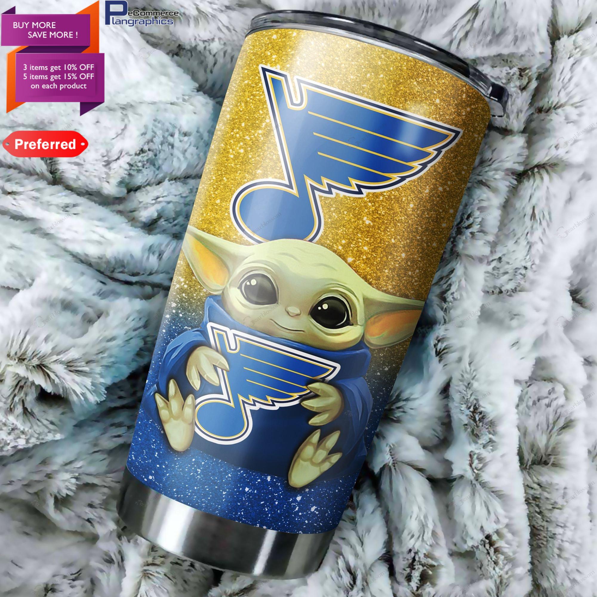 Baby Yoda Hug St Louis Blues 20oz Tumbler