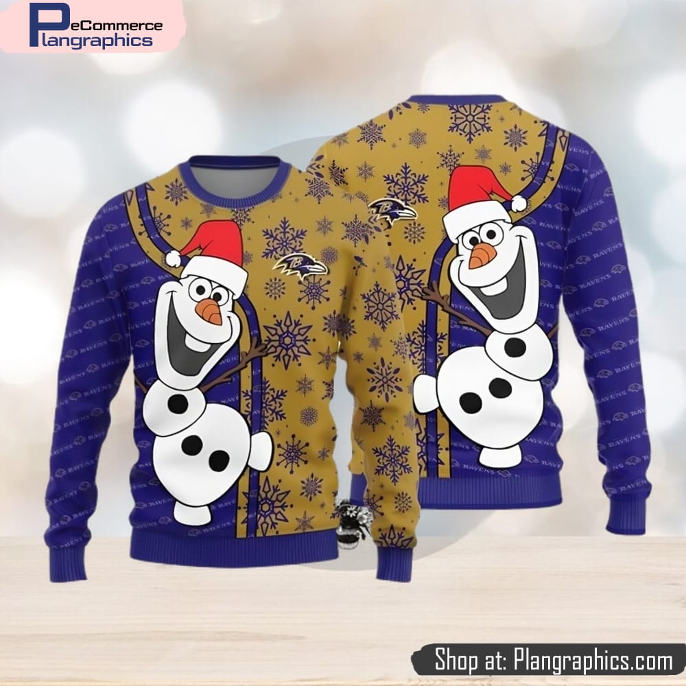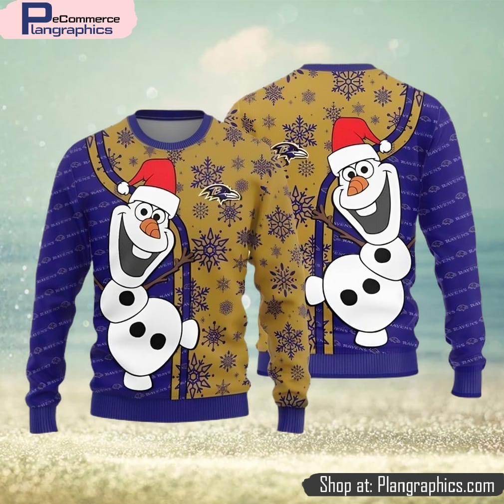 Baltimore Ravens Olaf Teams Funny Knitted Sweater For Christmas