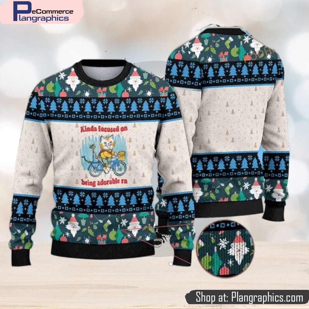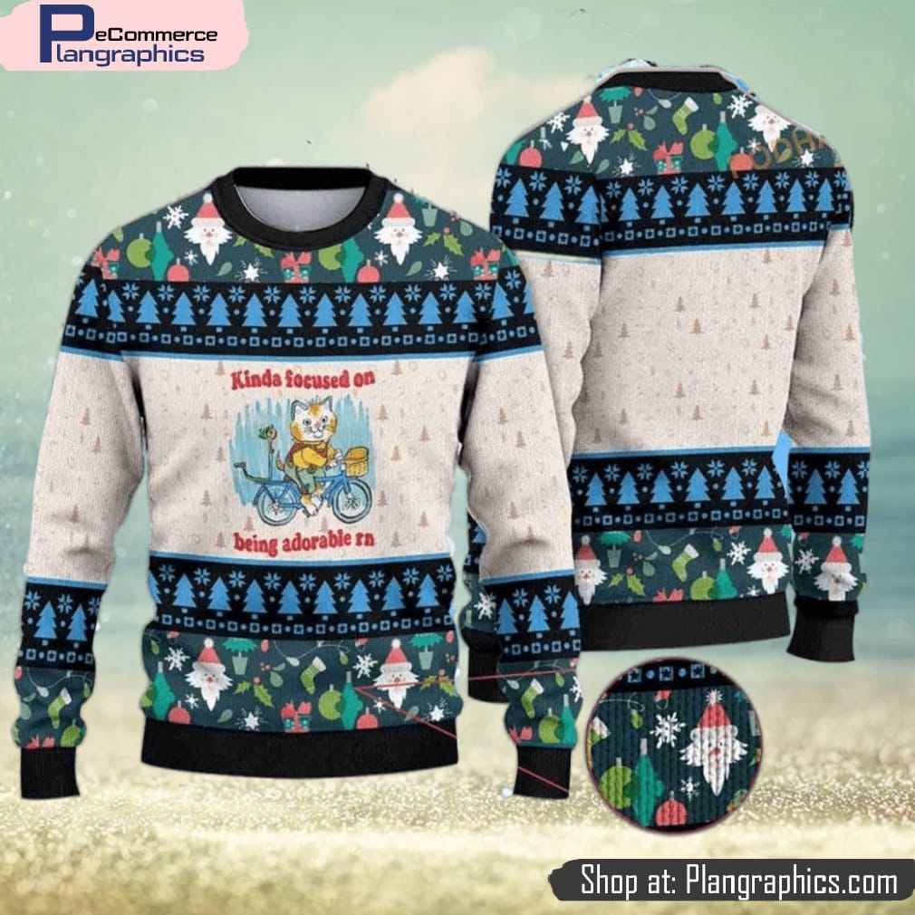 Being Adorable Kinda Cat Funny Ugly Sweater, Fleece 3D Funny Ugly Sweater 3D Gift Idea