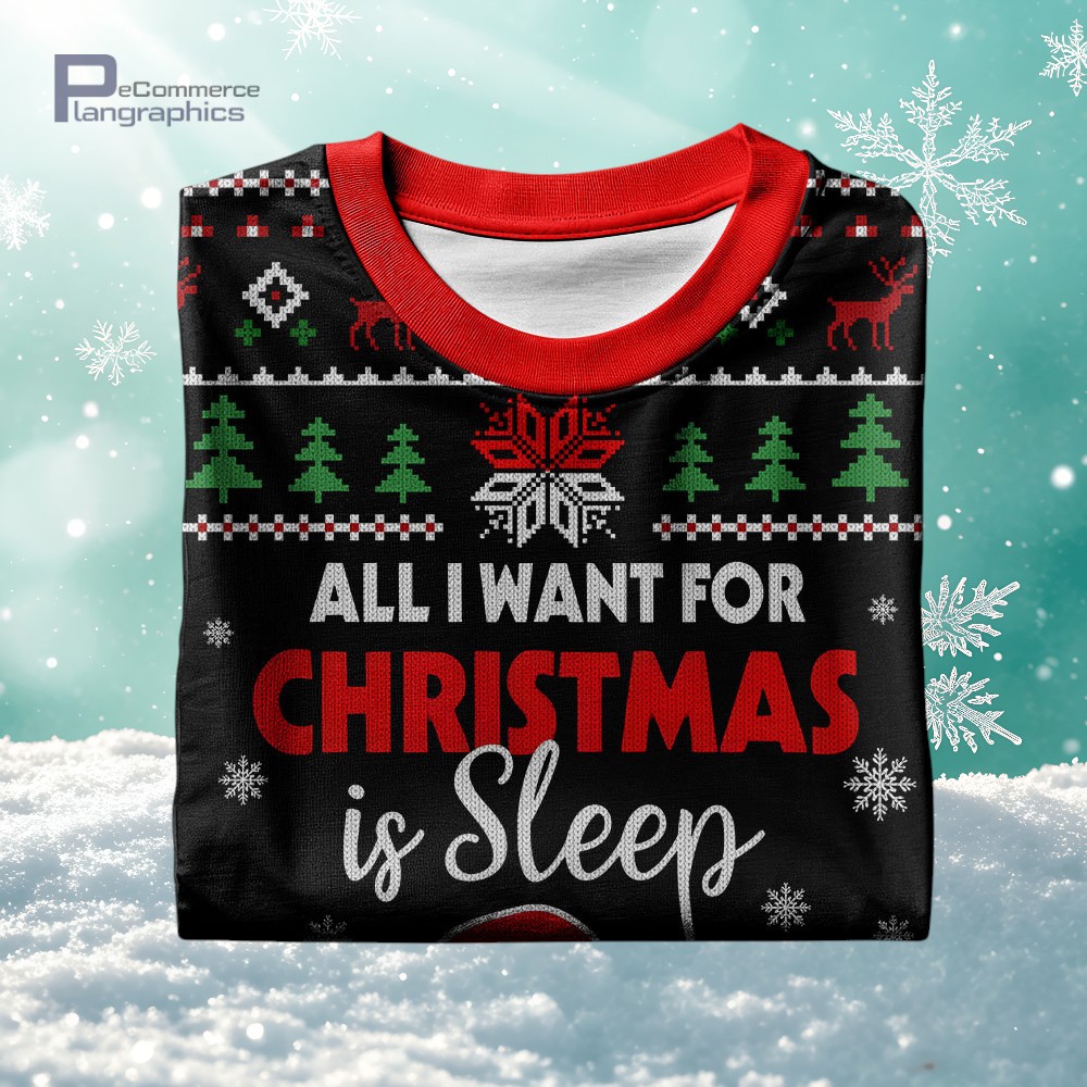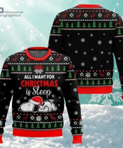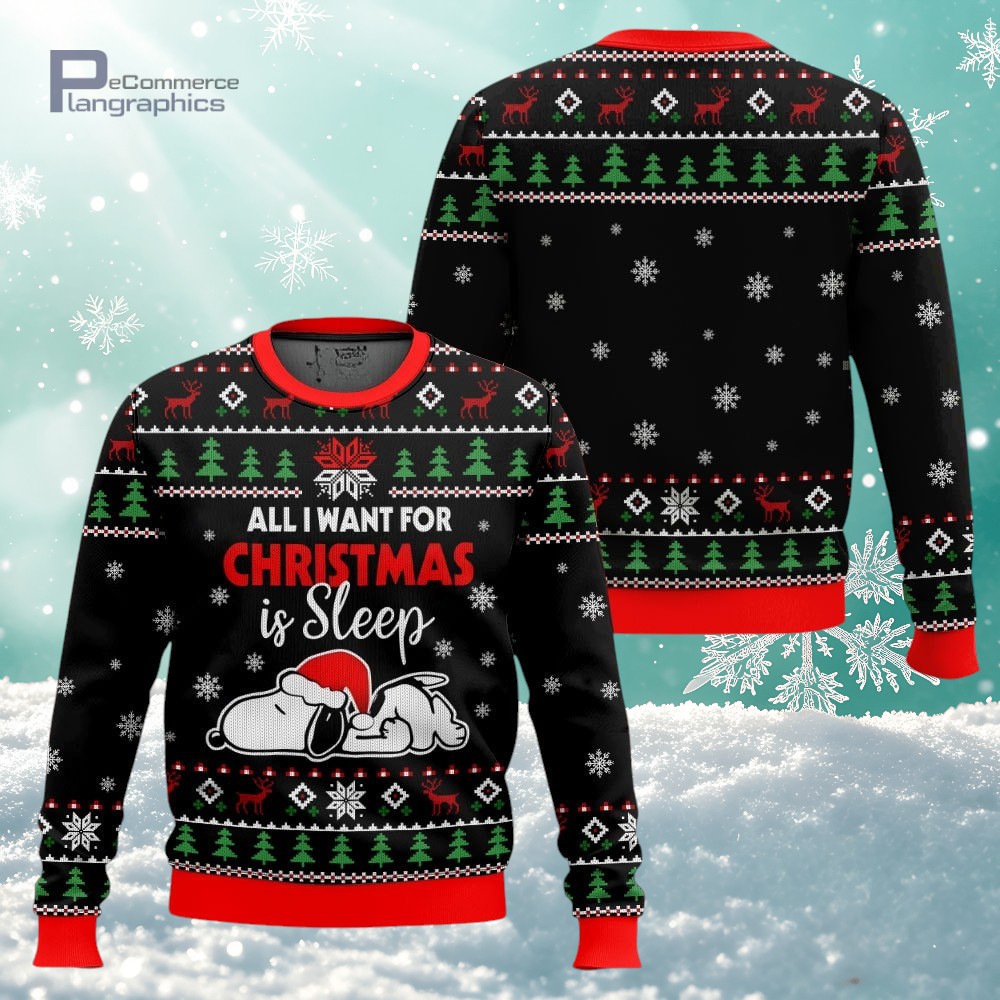 Black Color Lazy Snoopy All I Want For Christmas Is Sleep Ugly Christmas Sweater