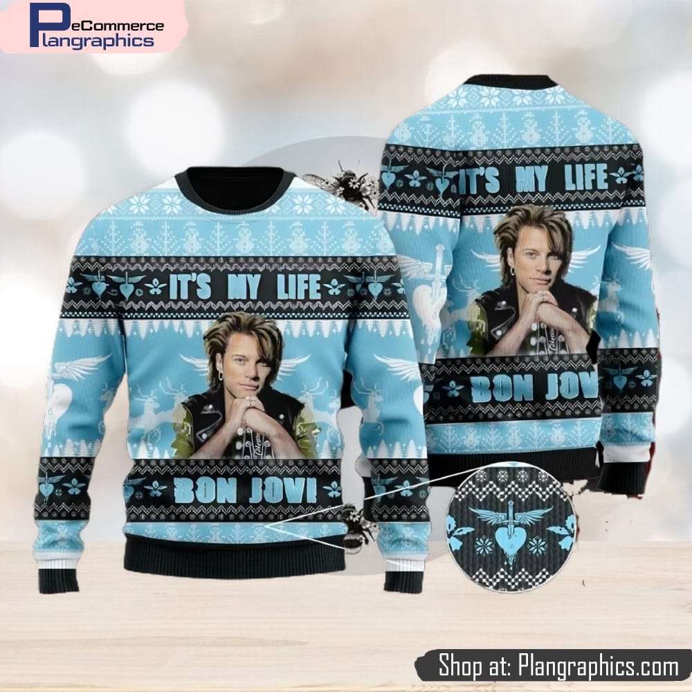 Bon Jovi It’s My Life Ugly Christmas Sweater Design Sweatshirt For Fans Gift