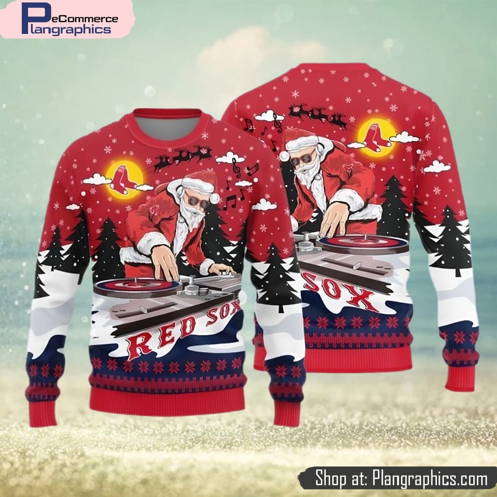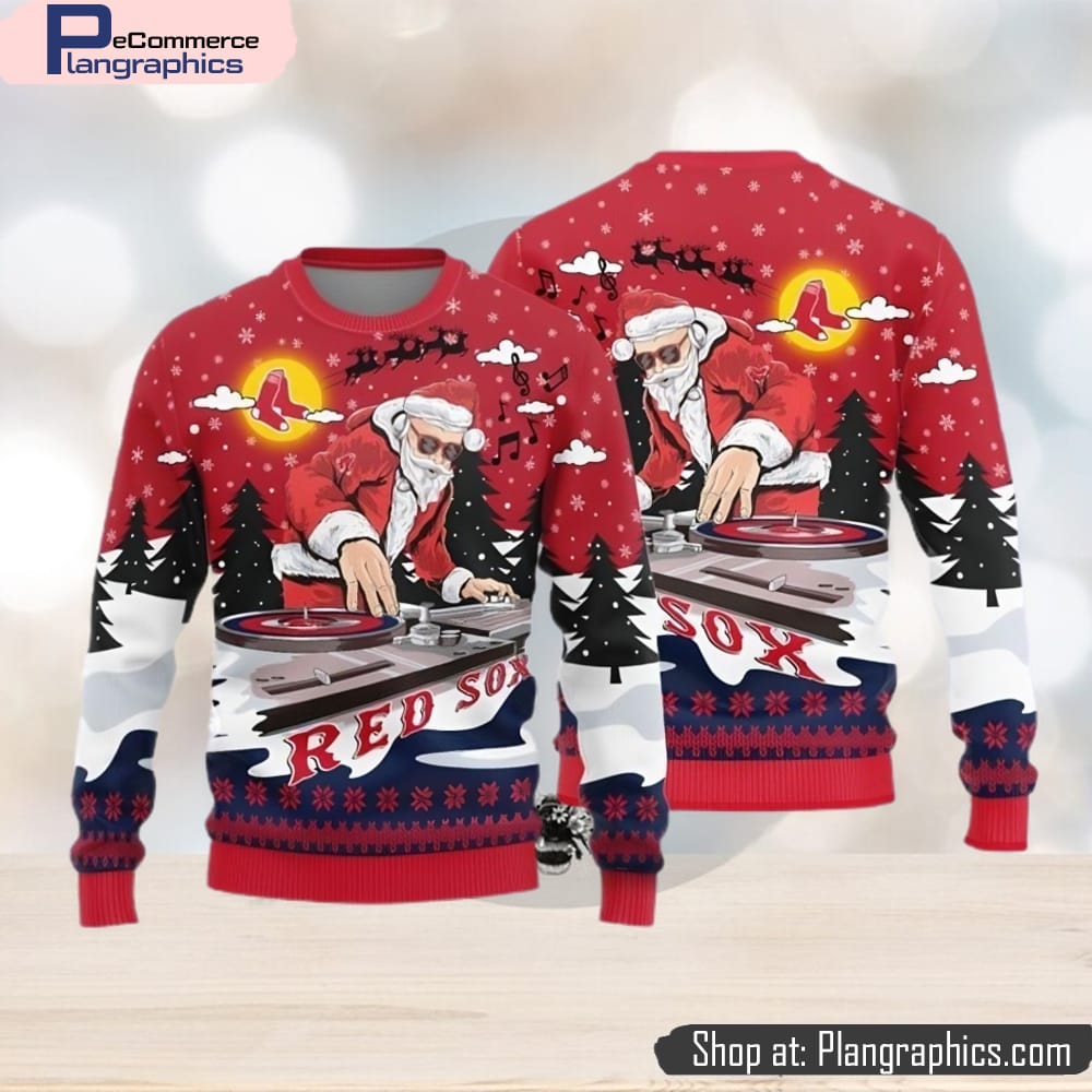Boston Red Sox Teams Funny DJ Santa Knitted Sweater For Christmas features