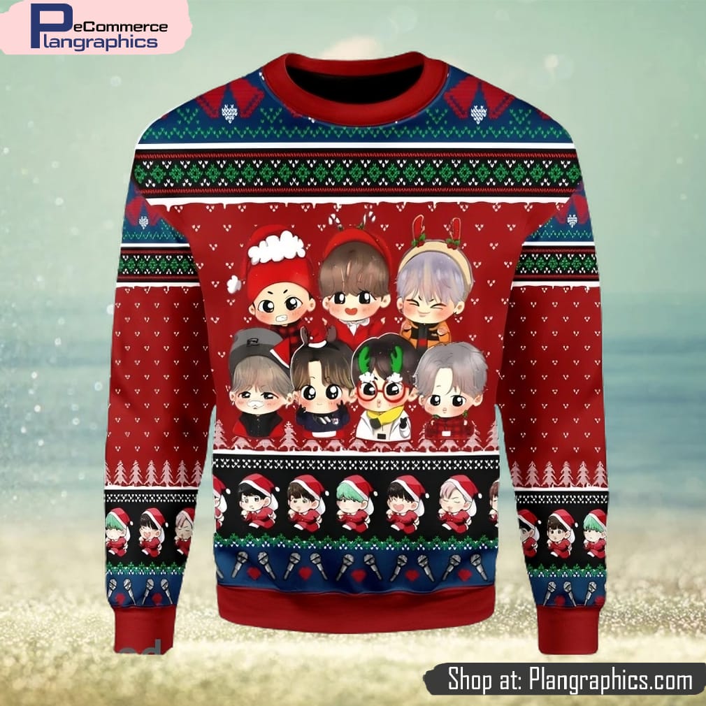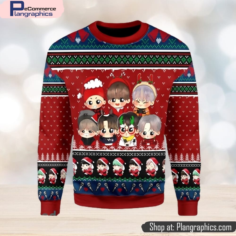 BTS Cute Gift Ugly Christmas Sweater Xmas Gift Men And Women Christmas Sweater features