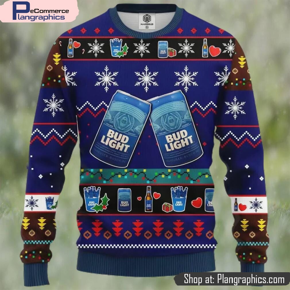 Bud Light Beer Ugly Christmas Sweater, Gifts For Beer Lovers features
