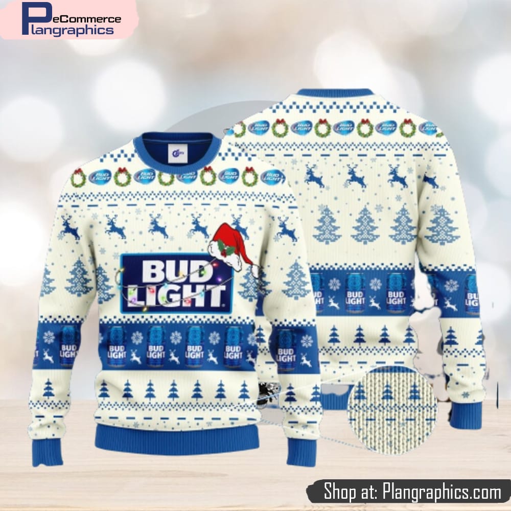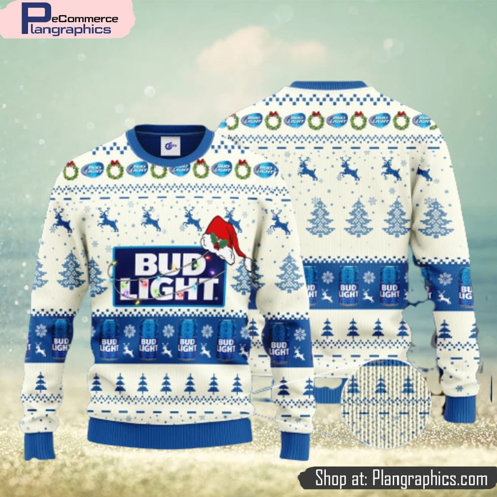 Bud Light Santa Hat Christmas Ugly Christmas Sweater 3D Gift For Men And Women features