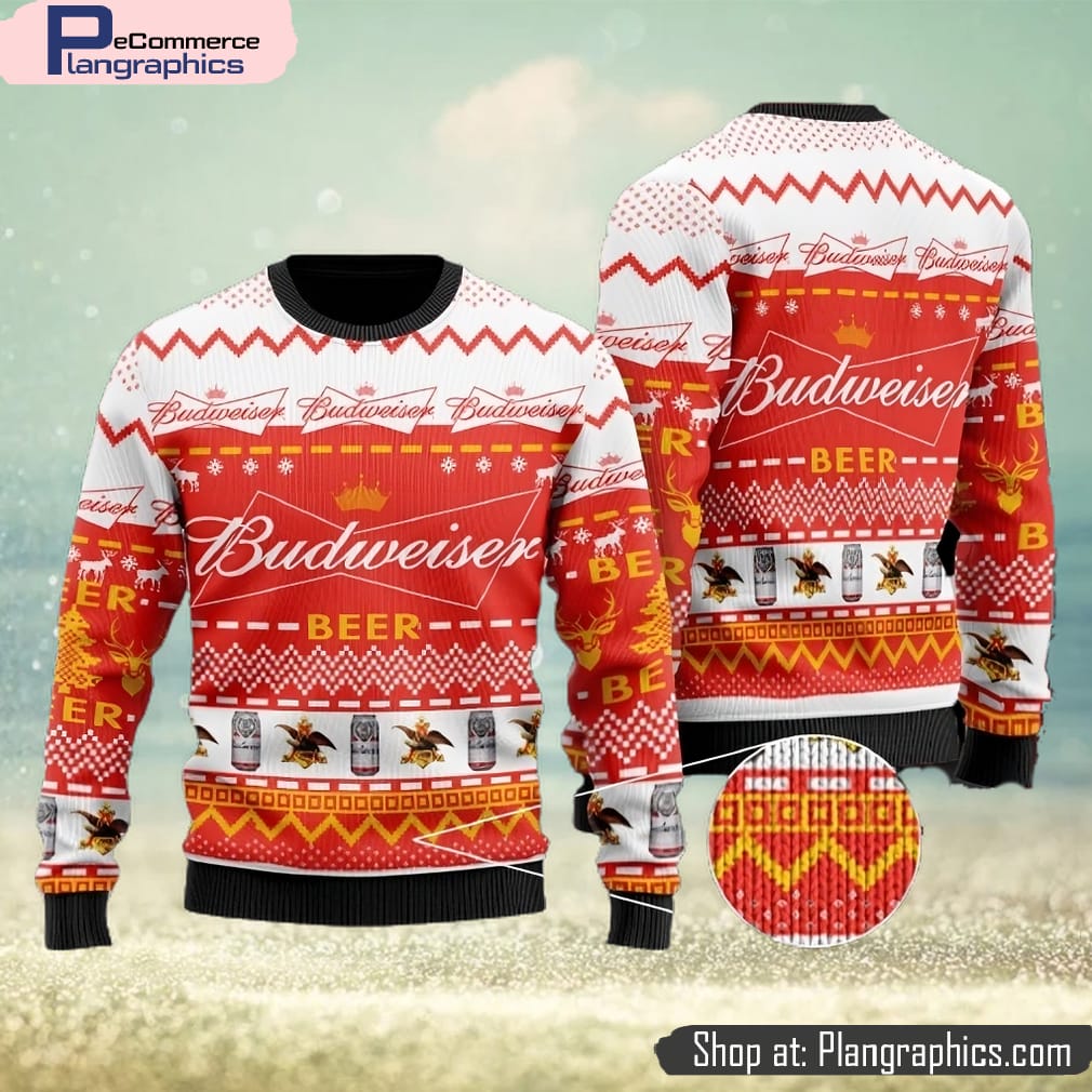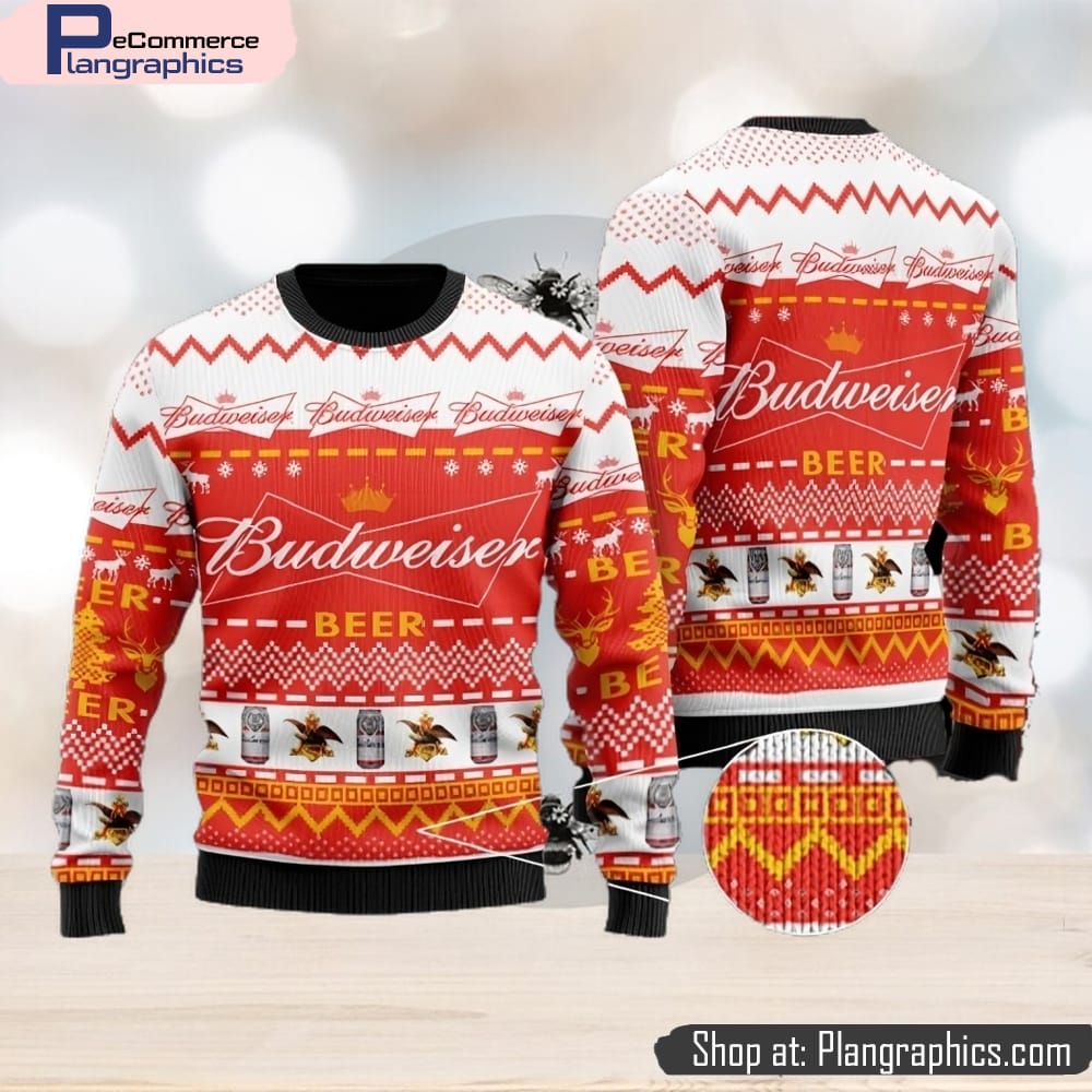 Budweiser Red Ugly Christmas Sweater Design Sweatshirt For Fans Gift