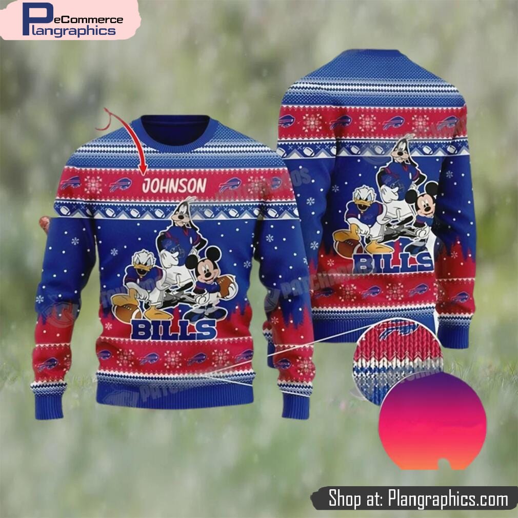 Buffalo Bills Disney Mickey Mouse Personalized Christmas Ugly Sweater Gift For Fan