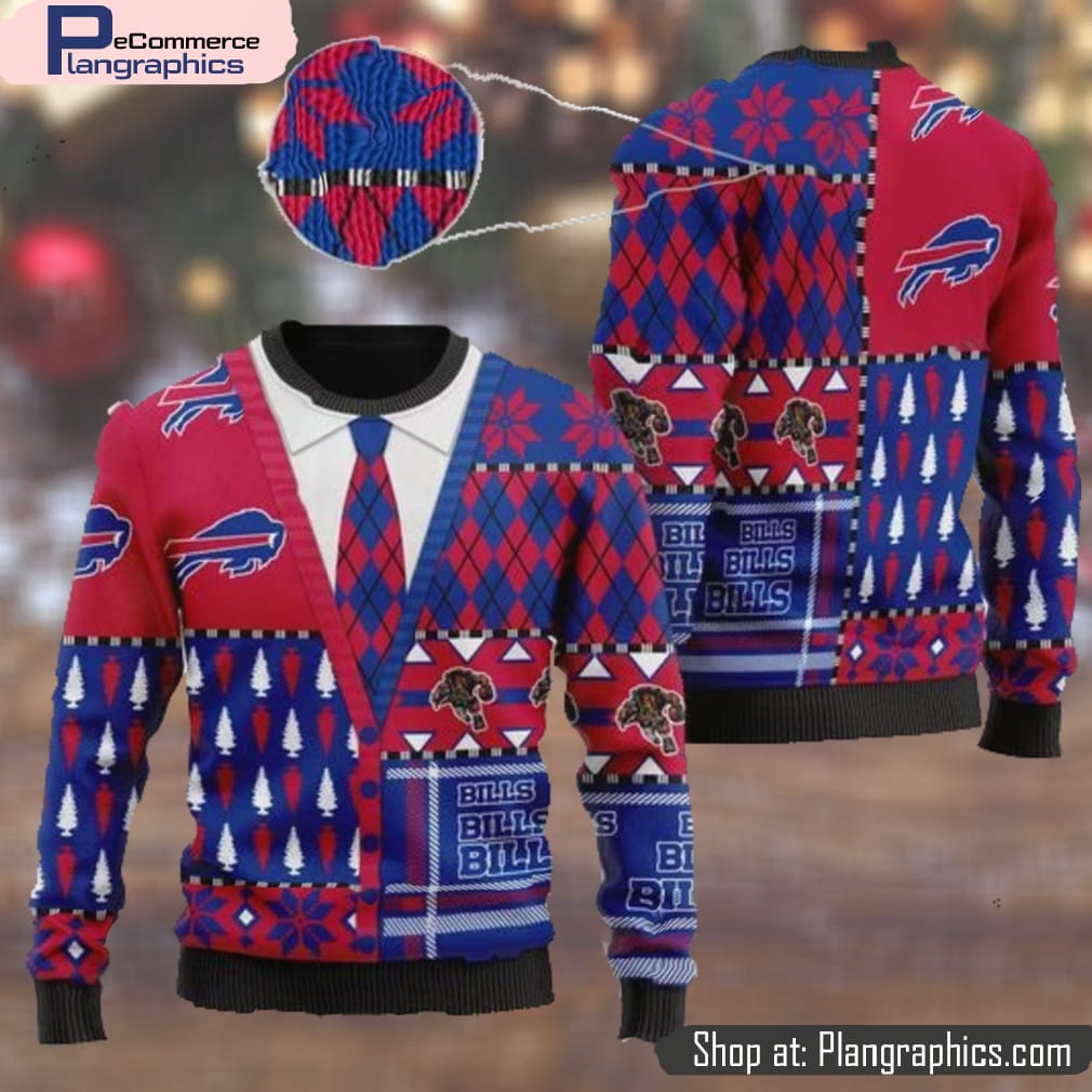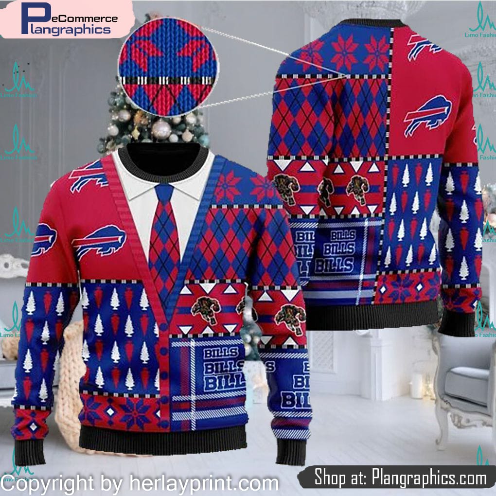 Buffalo Bills NFL American Football Team Cardigan Style 3D Men And Women Ugly Sweater features
