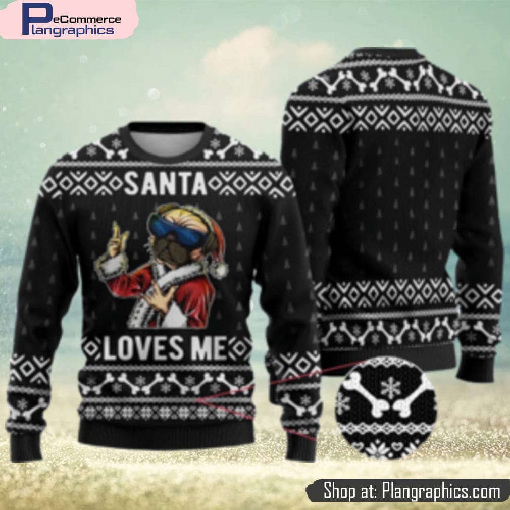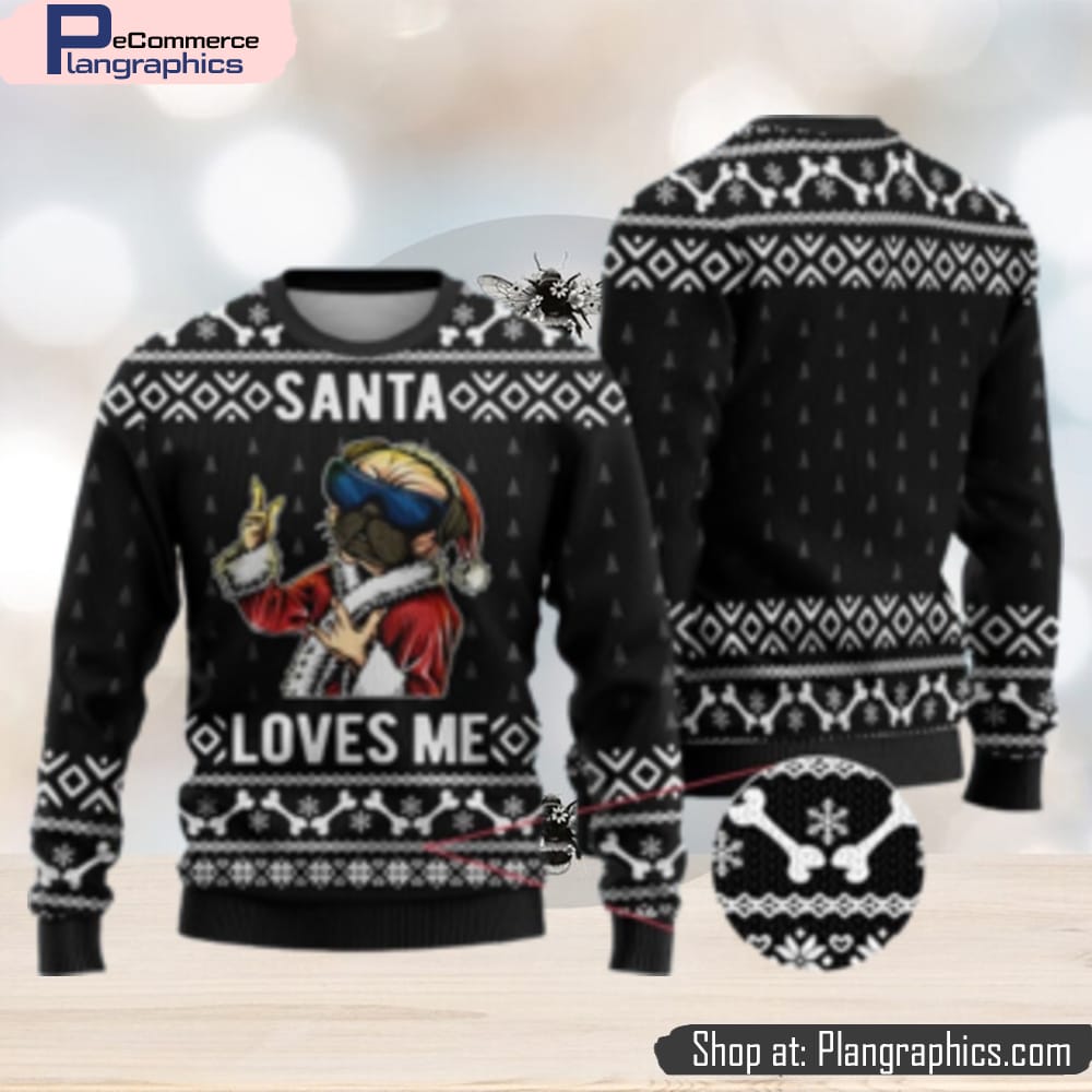 Bulldog Ugly Christmas Sweater Black Gift For Men And Women features