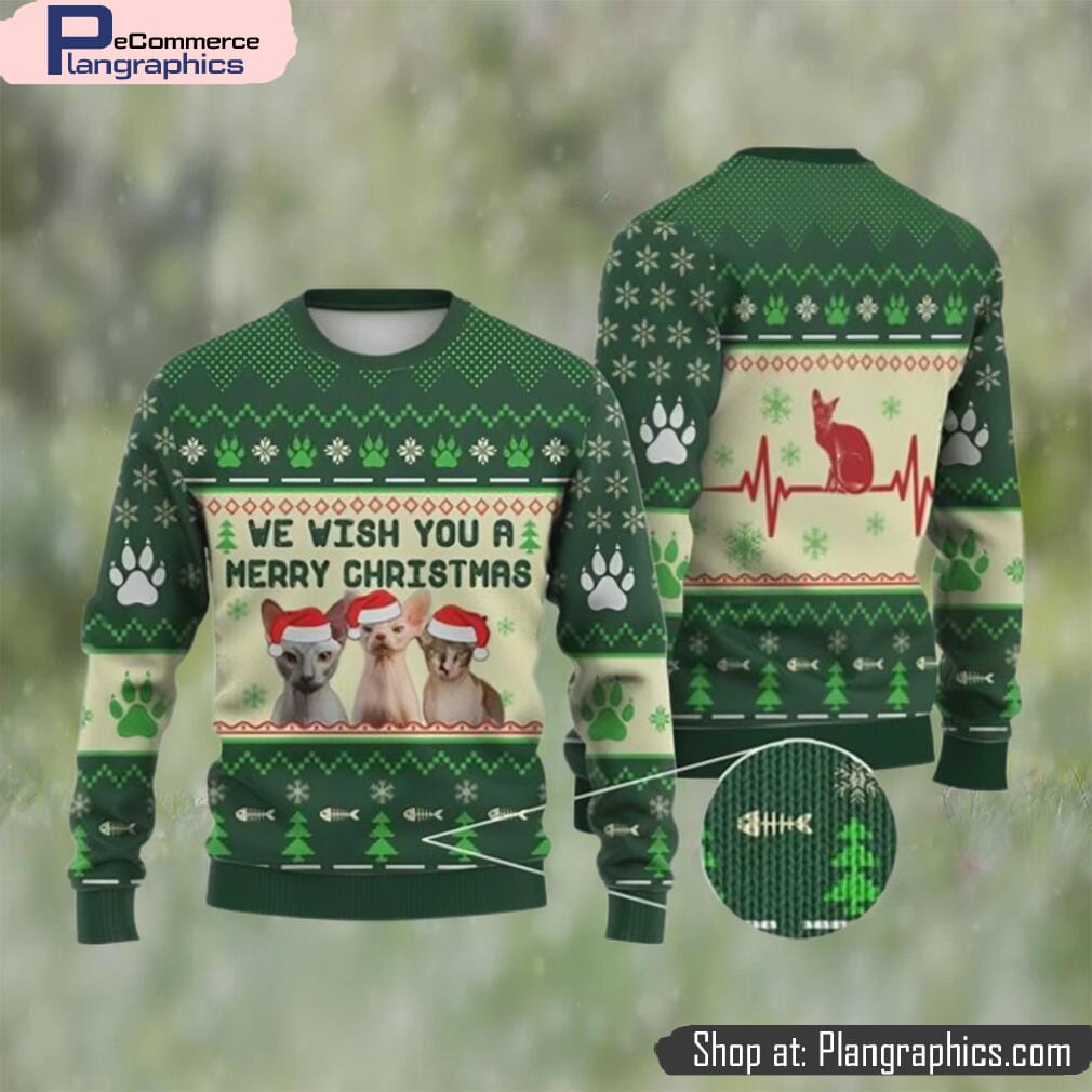 Cat Christmas Sweater Sphynx Cat We Wish You A Merry Ugly Christmas Sweater 3D