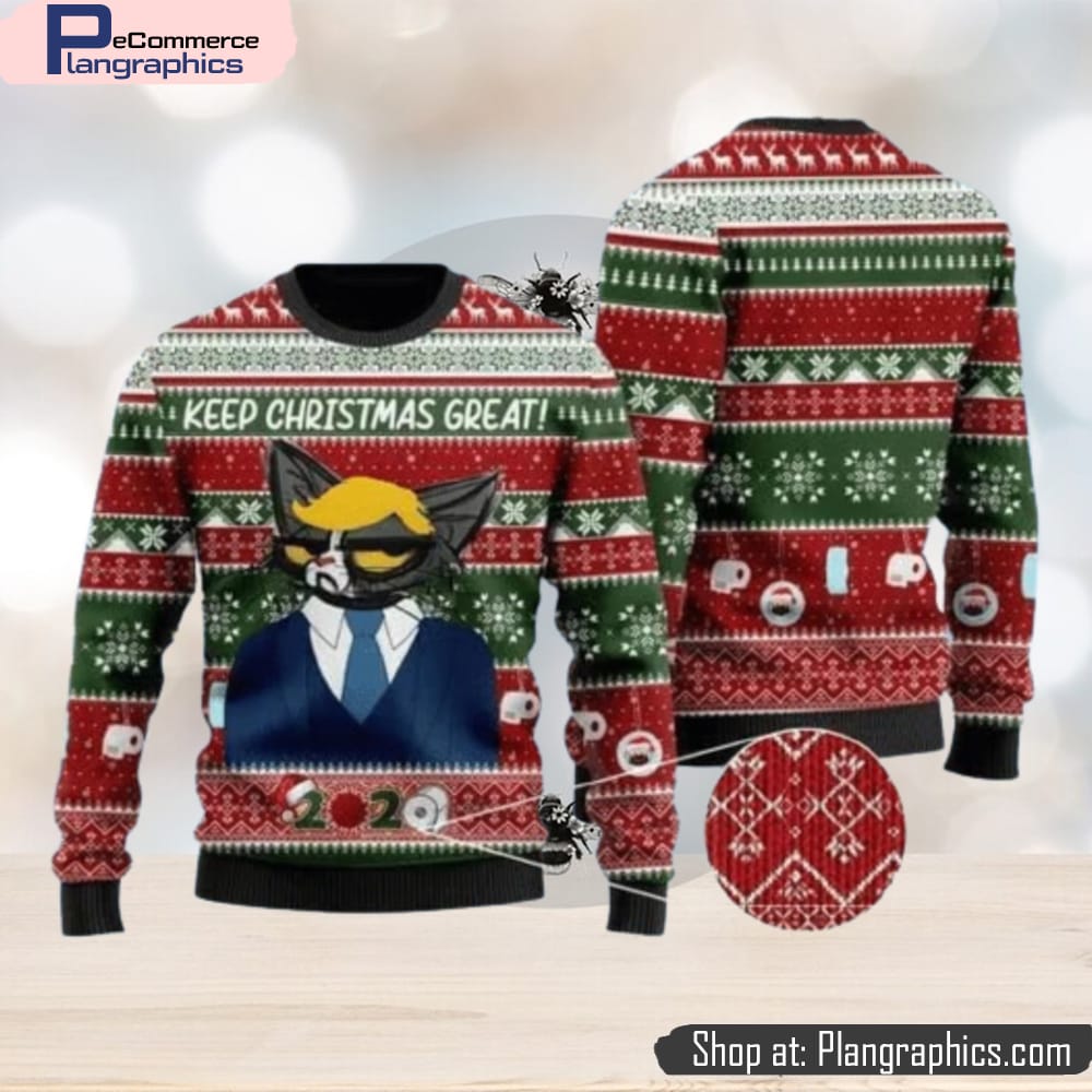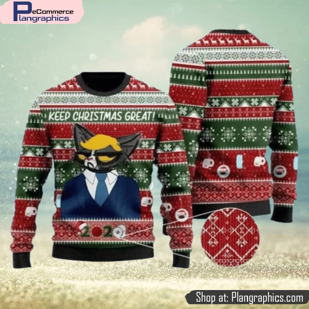 Cat Christmas Trump Cat Keep Christmas Great Green Red Christmas Ugly Sweater 3D For Men And Women