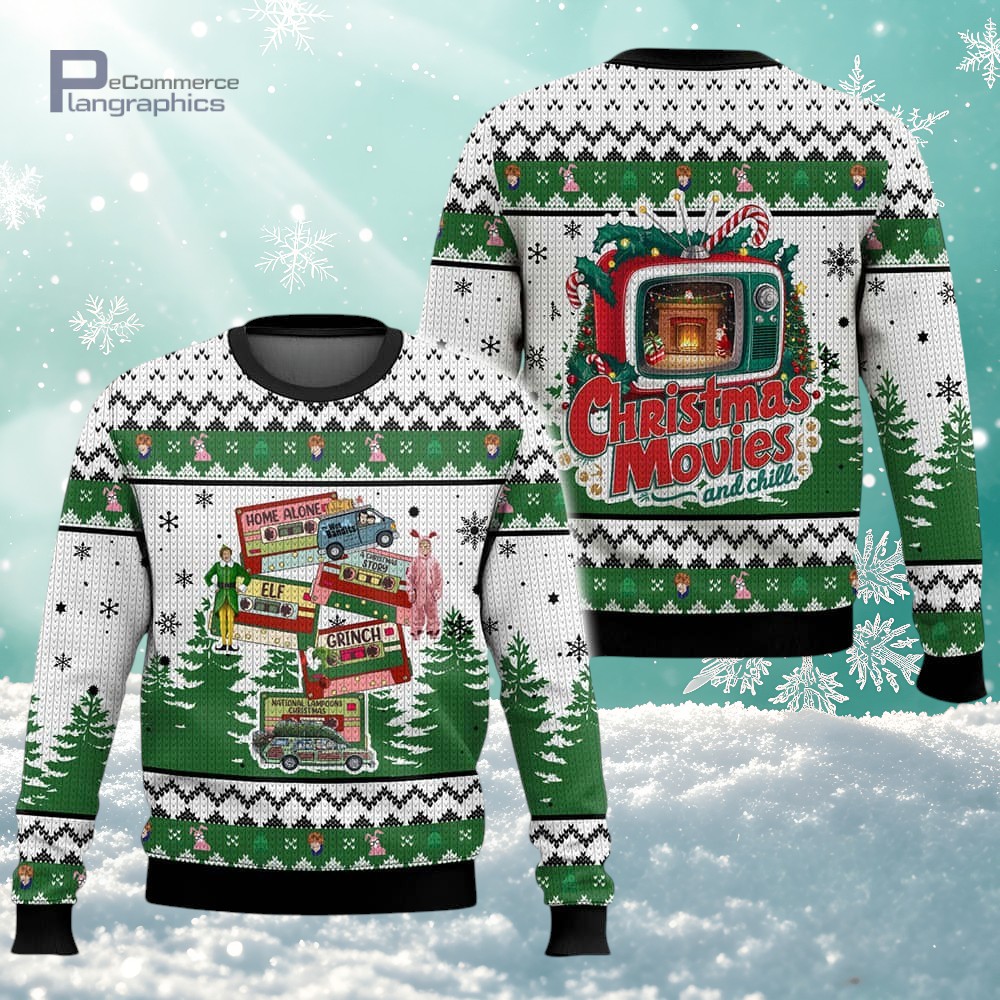 Christmas Movies & Chill ELF Holiday Spirit Ugly Christmas Sweater