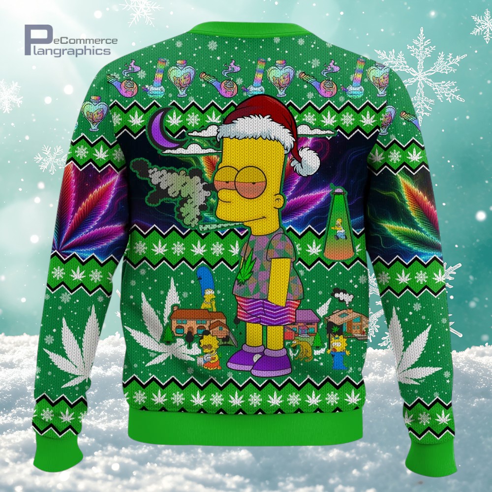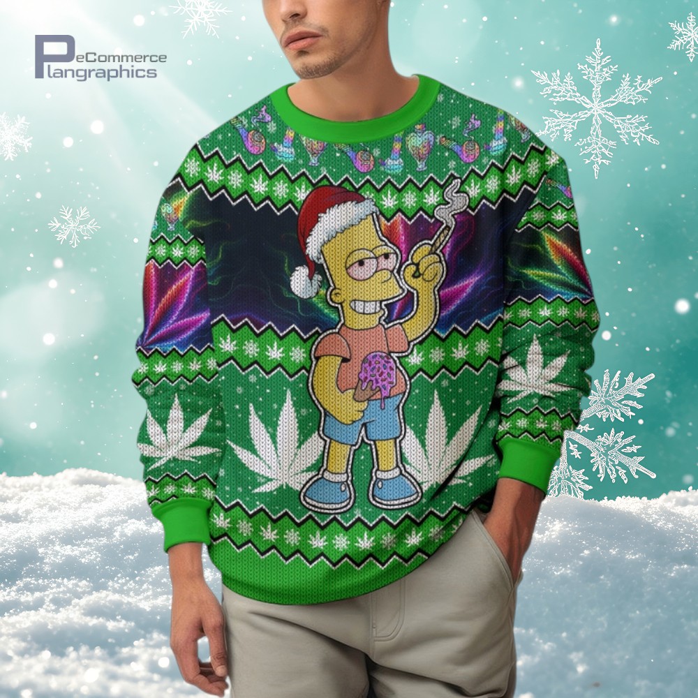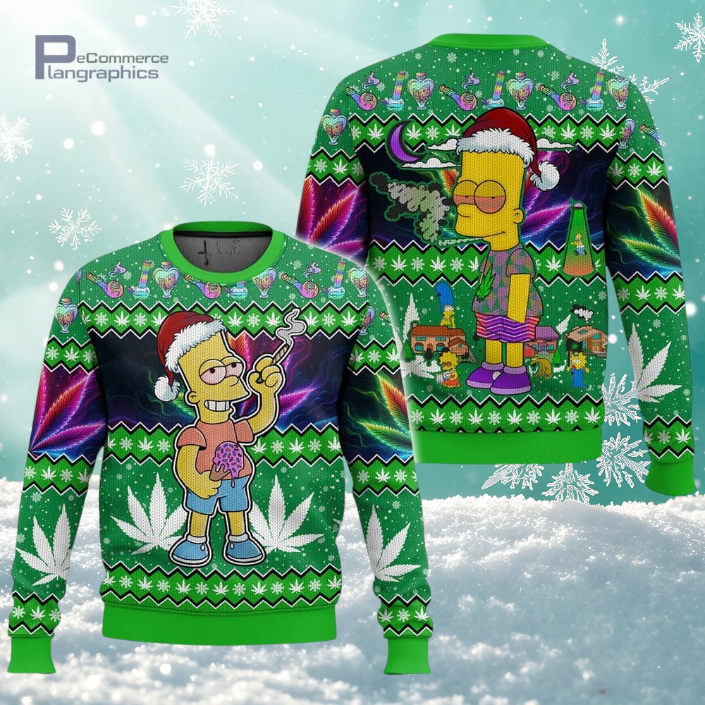 Christmas x 420 Weed Day Bart Simpson 3D All Over Printed Ugly Christmas Sweater