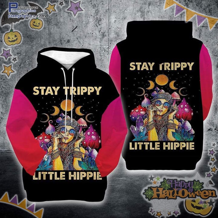 Girl Mushroom Stay Trippy Little Hippie Halloween Black Pink 3D All-Over Print Unisex Hoodie