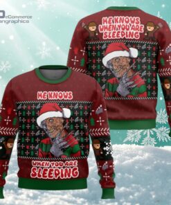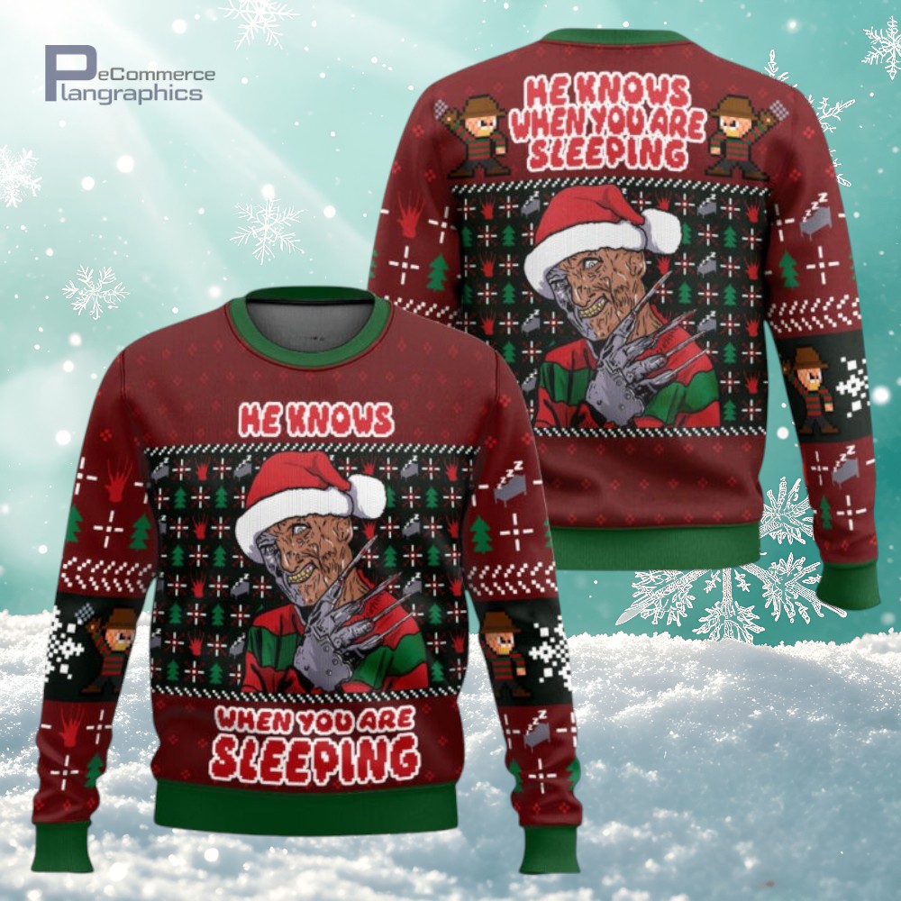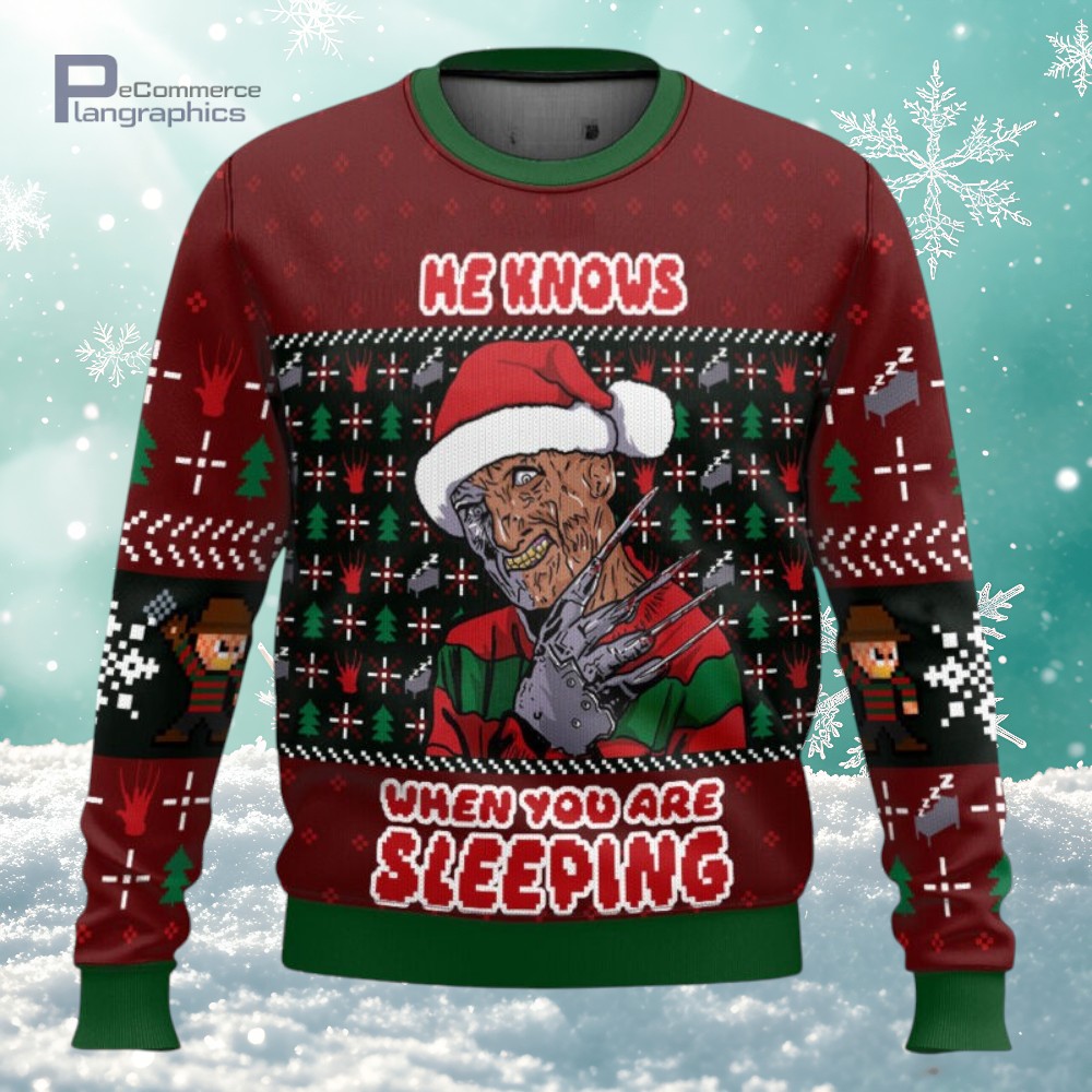 He Knows When You Are Sleeping Freddy Krueger Halloween Ugly Christmas Sweater