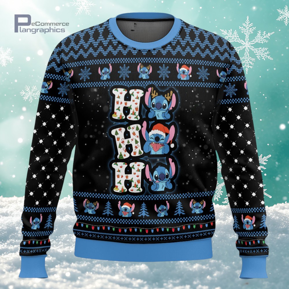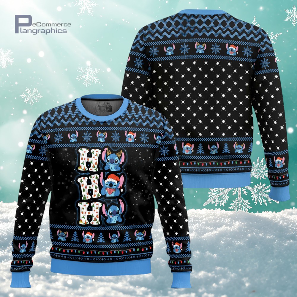 Hohoho Cheerful Stitch Love Christmas Holiday 3D All Over Printed Ugly Christmas Sweater