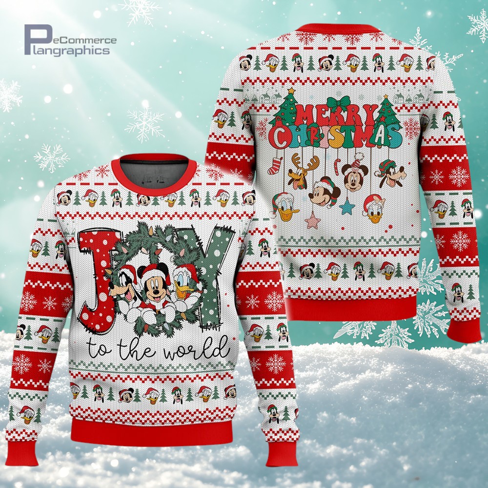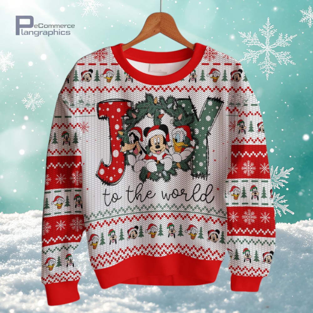 Joy To The World Mickey Mouse & Friends Merry Christmas Disney 3D All Over Printed Ugly Christmas Sweater