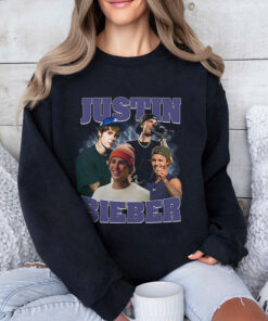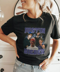 There’s a hint of early 2010s nostalgia in this piece, like flipping through a well-worn magazine of pop culture moments. The shirt features a collage of Justin Bieber’s recognizable faces, each captured in a way that plays on the passage of time—youthful and iconic expressions framed by bold block lettering that spells out his name. The typography, outlined and slightly retro, adds a graphic punch that feels simultaneously vintage and fresh. It’s easy to imagine this tee worn during relaxed weekends, paired with faded jeans or oversized shorts, the kind of outfit that doesn’t demand attention but carries a quiet confidence. The design speaks to those who remember following Bieber’s journey—the fans who grew up with his songs as a constant soundtrack or the newer listeners drawn to his style and evolution. Wearing it feels like a subtle nod to a shared moment in pop culture history, something that quietly connects you to others without shouting. On casual strolls, at music get-togethers, or simply as a comfortable layer, this Justin Bieber shirt fits effortlessly into everyday life. It would resonate with teens and young adults who appreciate not only the music but the personality and cultural phenomenon he represents. It’s a grounded way to express admiration, whether saved for laid-back weekends or shared as a thoughtful gift to someone who finds meaning in those early hits and the era they define.