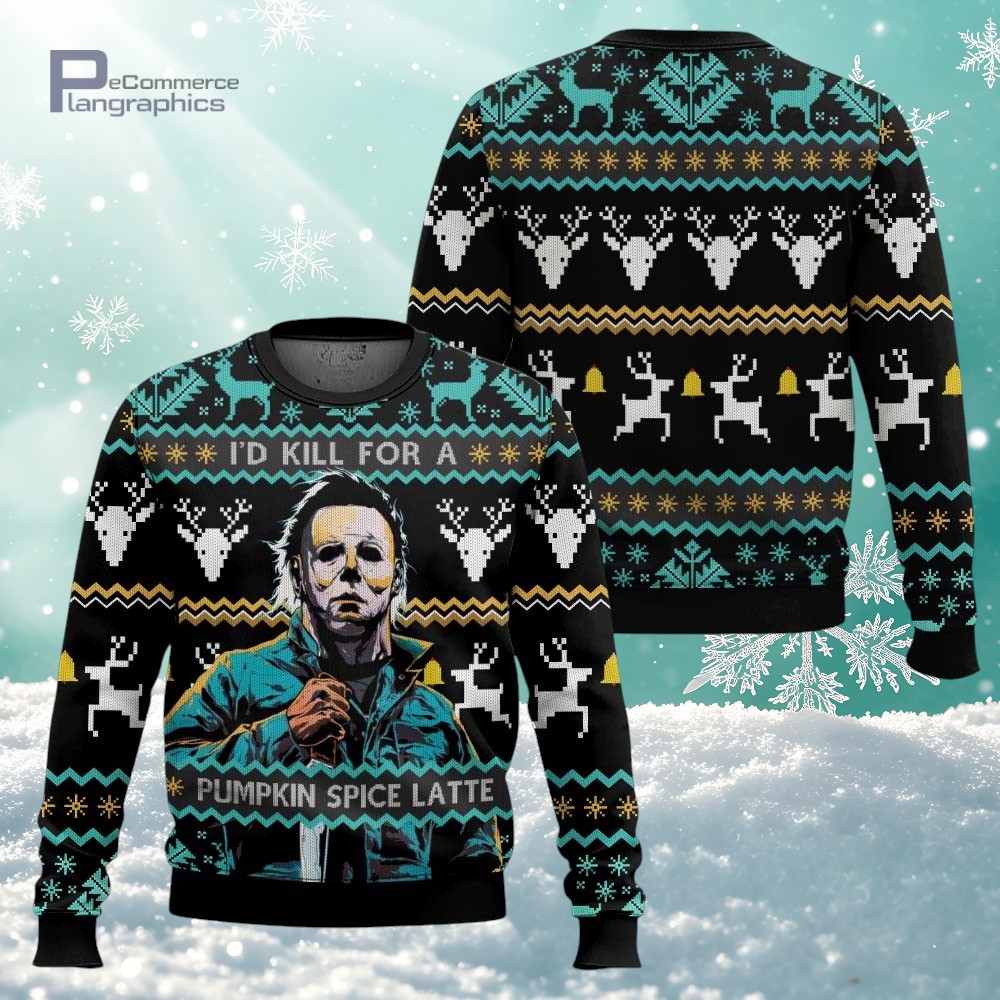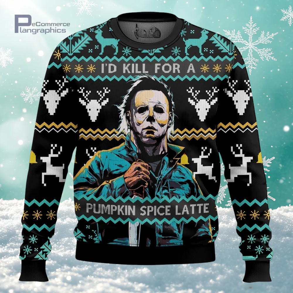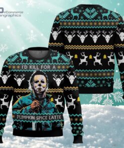 Michael Myers I’d Kill For A Pumpkin Spice Latte Halloween 3D All Over Printed Ugly Christmas Sweater