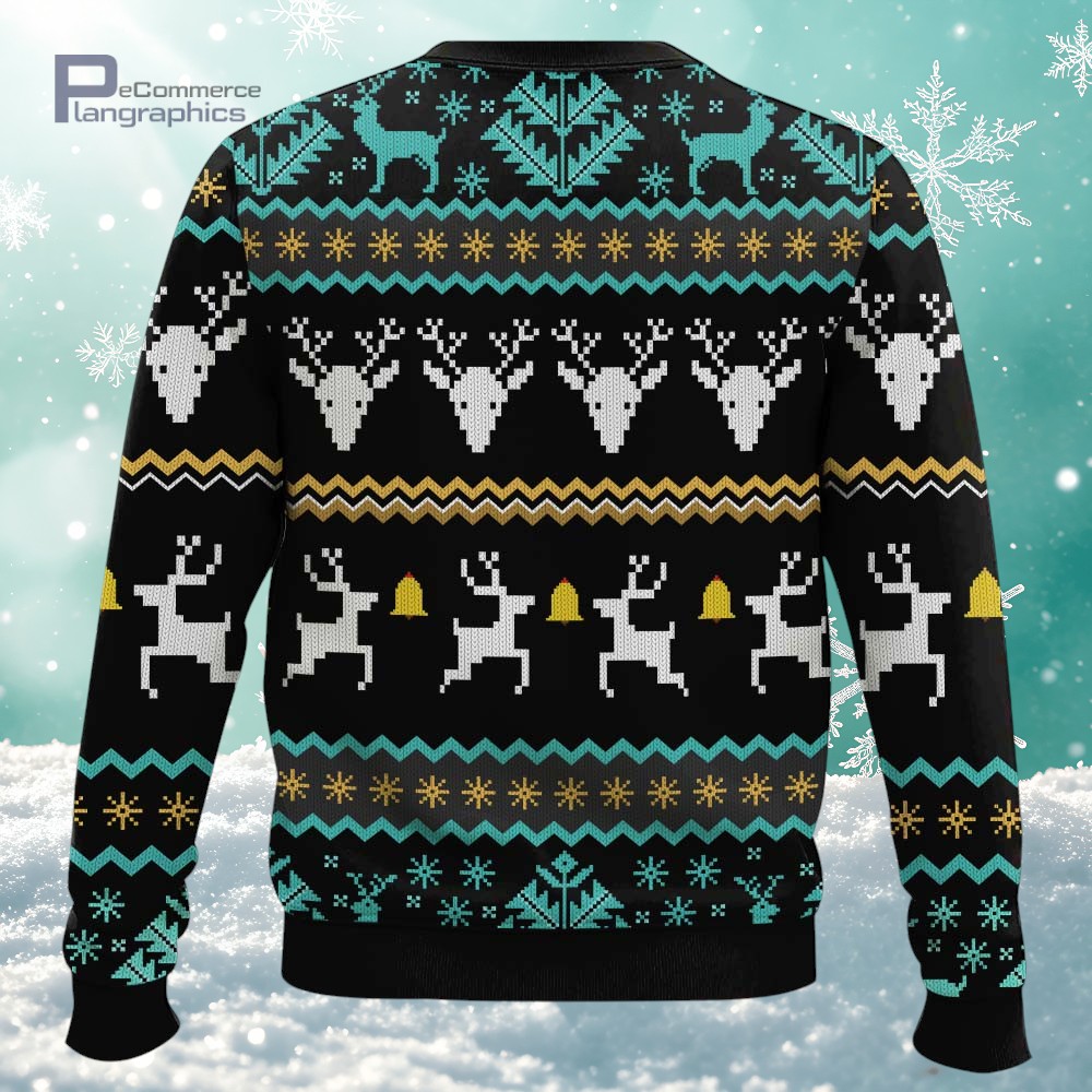 There’s something oddly satisfying about blending the spooky and the seasonal in ways that feel fresh yet comforting. This Michael Myers Halloween ugly sweater taps into that mix perfectly, offering a playful riff on the usual holiday knitwear. The bold block letters shouting “I’d Kill For A Pumpkin Spice Latte” across the chest make an immediate impression, setting a cheeky tone that horror aficionados will appreciate. Visually, the design doesn’t just rely on text. Michael Myers looms with cartoonish menace, a chilling silhouette brought to life in teal and gold accents that jolt traditional Halloween colors into festive territory. Geometric snowflakes, stylized reindeer, and quirky mug motifs pepper the background, knitting together the crossover between Halloween horror and holiday cheer. It’s an aesthetic mashup that’s both vibrant and a little eerie—perfect for those who like their seasonal style with a sharp edge and a wink. This sweater feels tailor-made for fans who revel in slasher lore but also embrace the lighter side of the season’s quirks—think horror buffs who can’t resist a pumpkin spice latte (or know someone who can’t). It’s as much a conversation starter as it is a piece of wearable fandom, fitting right in at any Halloween gathering or ugly sweater party. Whether as a gift for the horror die-hard or a treat for yourself to wear with a dose of humor, this Michael Myers Halloween ugly sweater brings personality and passion for both spooky stories and seasonal flavors into one bold package.
