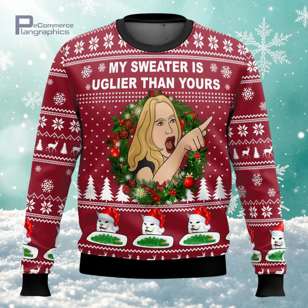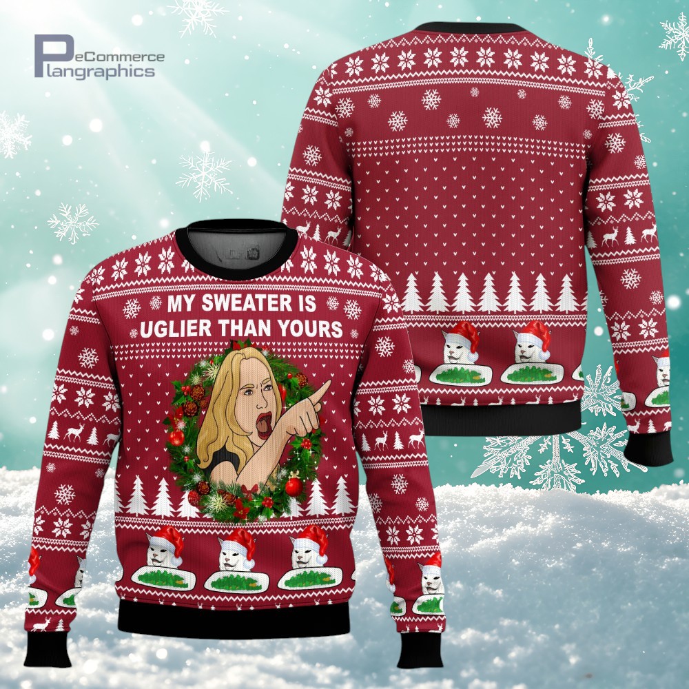 My Sweater Is Uglier Than Yours Woman x Cat Meme 3D All Over Printed Ugly Christmas Sweater