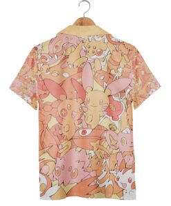 Soft pastel peaches and gentle pinks swirl together in a playful collage of Pokemon characters, capturing a retro tropical vibe that feels both fresh and nostalgic. The design doesn’t just shout fandom—it whispers it with subtle charm, making the shirt a natural fit for anyone who loves the cute side of Pokemon culture without leaning too heavily into loud graphics. These tones soften the usually vivid Pokemon imagery, lending the shirt an inviting, warm glow that’s perfectly at home on sun-dappled beach days or casual hangouts. This Pokemon Hawaiian shirt speaks directly to young adults and teens who want their style to reflect more than just trends. It’s for those who appreciate a lighthearted yet meaningful nod to their favorite creatures, embracing a relaxed, fun, and energetic mode of dressing that meshes seamlessly with both everyday life and longer getaways. Whether worn at a cosplay event or tossed on for an afternoon stroll by the shore, the playful design sparks joy and connection, turning a simple outfit into a statement of personality and fandom. Because it bridges the gap between casual beachwear and pop culture devotion, it makes a thoughtful gift for anyone who’s grown up with the Pokemon world and now wants to carry a piece of that magic into their daily wardrobe. The mix of tropical style and pastel anime charm invites a breezy kind of confidence, the kind that’s perfect when the sun is high, the vibe is chill, and the spirit is ready for adventure.