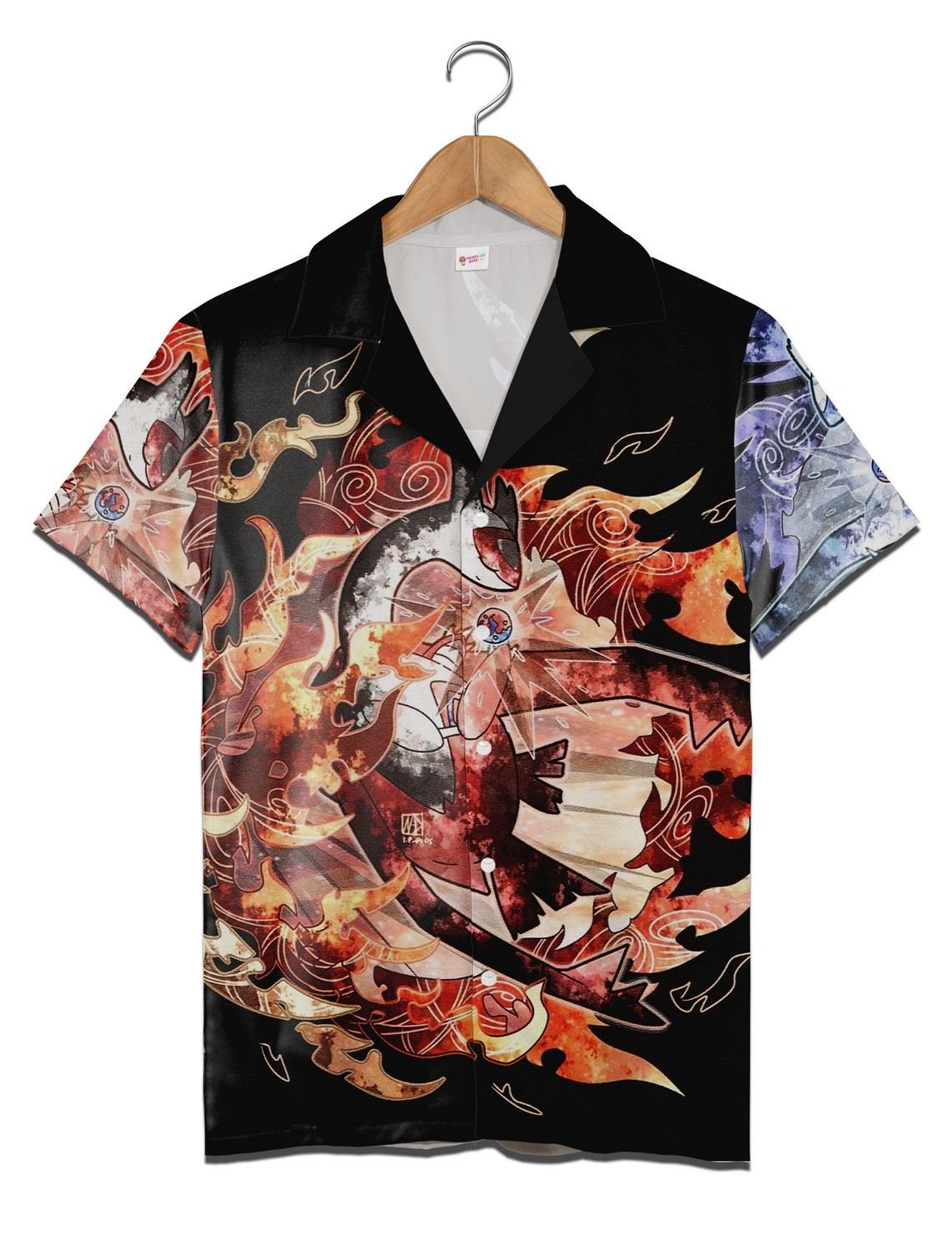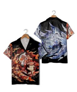Bright bursts of fiery reds and oranges ripple against a deep black backdrop, where iconic magical creatures from the Pokemon universe battle and swirl in a chaotic dance of energy. The shirt’s patterns are not orderly or restrained; instead, they pulse with an untamed, almost electric intensity. Each illustrated figure seems alive, caught mid-motion, inviting the wearer to embody that same sense of spirited adventure and fearless self-expression. More than just a piece of clothing, this Pokemon Hawaiian shirt is a canvas for those who embrace boldness without apology. It suits someone who wears their passion on their sleeve—literally—and who finds joy in the vivid intersections of fantasy and everyday life. Whether paired with casual shorts on a summer day or layered under a jacket at a convention, it feels like armor for the imaginative and the unapologetically playful. This shirt appeals to the Pokemon fan who isn’t afraid to stand out, to the anime enthusiast who appreciates intricate art that tells a story beyond simple nostalgia. It’s a vivid statement, a conversation starter, a way to carry a world of magical battles close to your chest—wherever your own adventures take you.