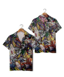 There’s something magnetic about a shirt that doesn’t just sit quietly in your wardrobe but shouts your allegiance to a world of adventure and nostalgia. The Pokemon Hawaiian shirt grabs attention with its riot of colors and layered graphics, a blur of bold reds, electric blues, and neon yellows clashing and harmonizing like a vibrant street mural. Every inch pulses with energy, a chaotic collage where cartoonish gadgets collide with warning signs and comic-strip line work, creating a visual feast that’s both playful and brimming with personality. This is not just apparel; it’s a statement. The graphic density echoes the collector’s thrill of spotting rare cards or tracking down elusive creatures. It’s for those who thrive on the unexpected, who wear their fandom like a badge of honor and aren’t afraid to show it in loud, colorful style. The design captures the essence of a world where adventure meets mischief, perfect for anyone who sees their love of Pokemon as part of their identity, not just a hobby. Whether it’s hitting the beach, wandering a convention hall, or just adding a layer of fun to a casual day, this shirt fits naturally into a life that embraces spontaneity and bold expression. Pokemon fans with a penchant for streetwear-inspired graphics will find this shirt a thrilling addition to their rotation, and it’s an easy, thoughtful gift for those who live for games, anime, and all things unapologetically vibrant.