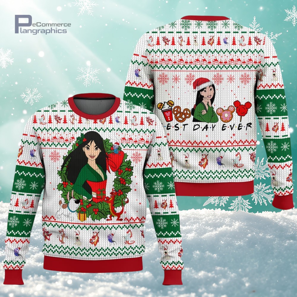 Pretty Mulan Disney Princess Best Day Ever Christmas 3D All Over Printed Ugly Christmas Sweater