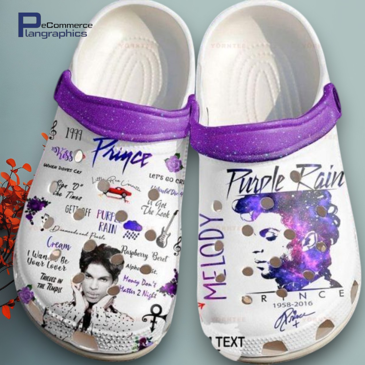 Prince Purple Printed Crocs Clogs – Comfortable Water Shoes for All details